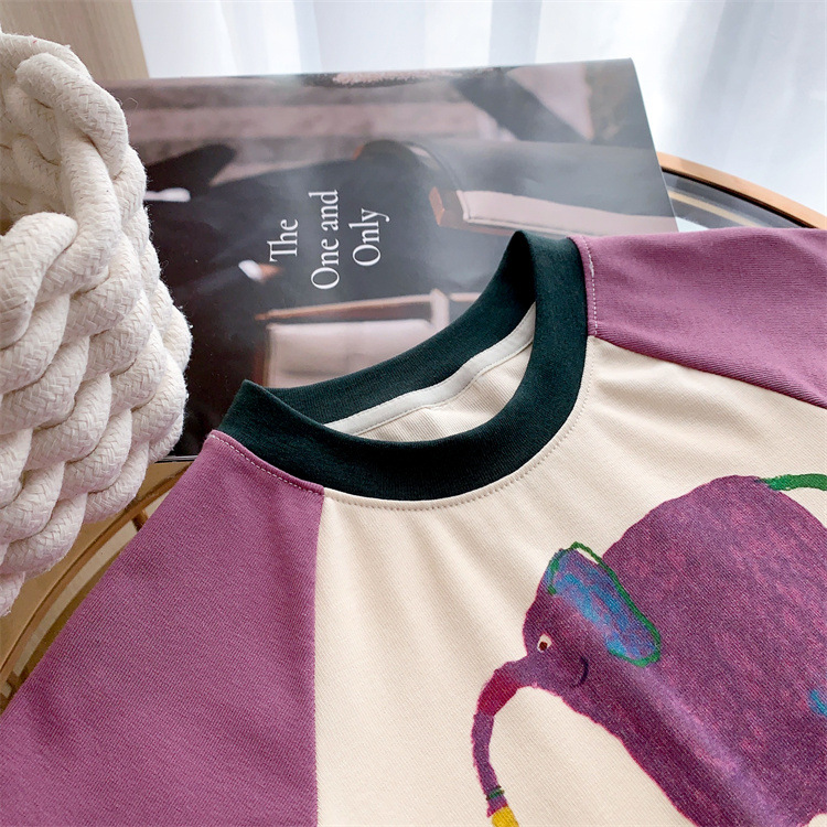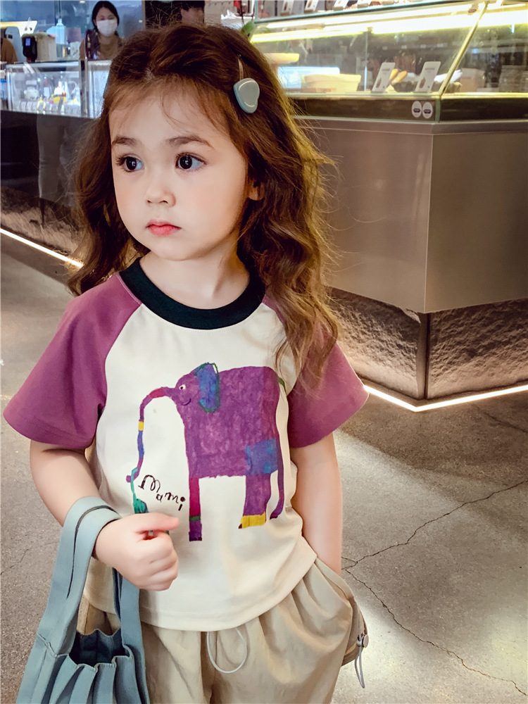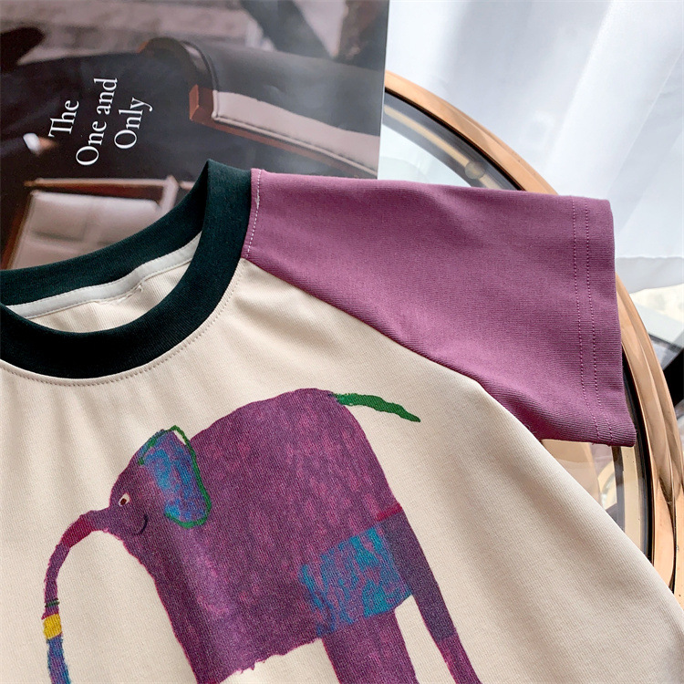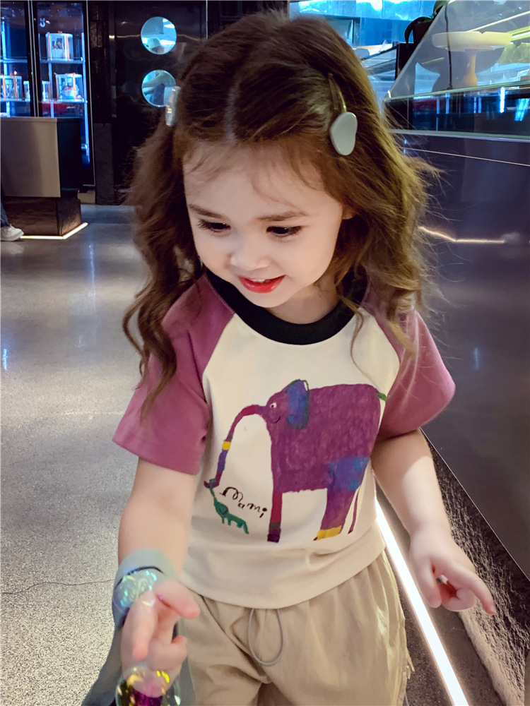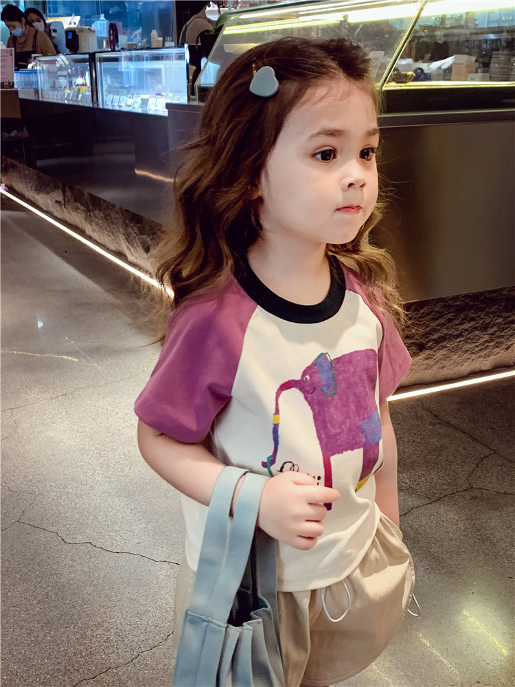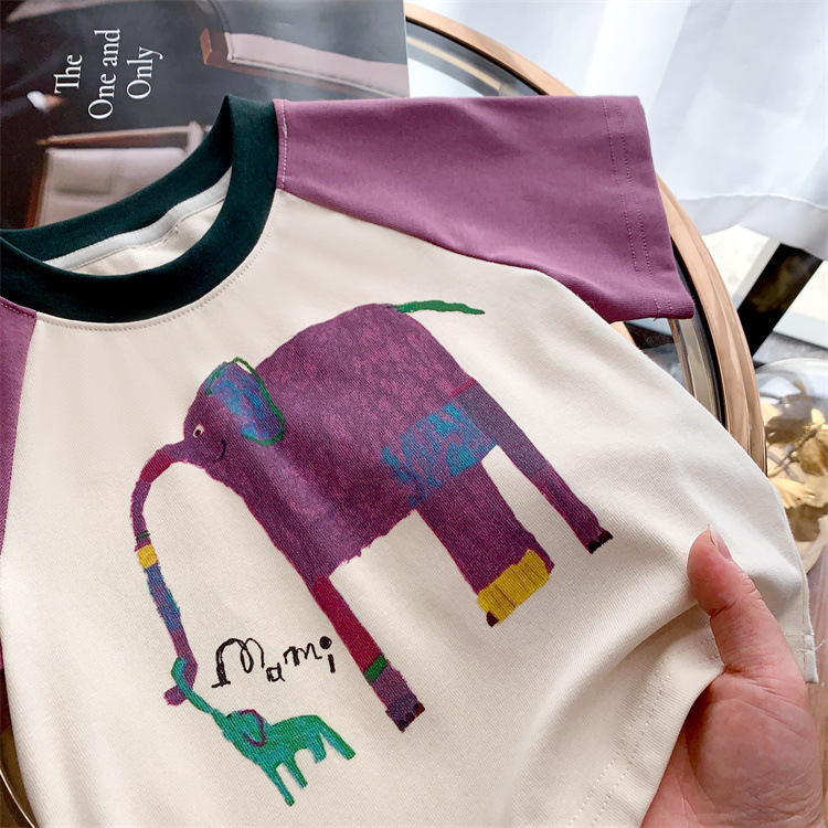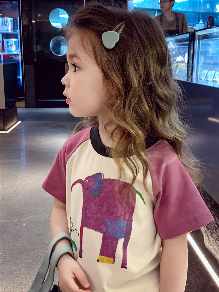 여자 반팔 티셔츠 여름 2025 새로운 느슨한 한국 만화 탑 소녀 세련된 아동베이스 셔츠스토어 가기