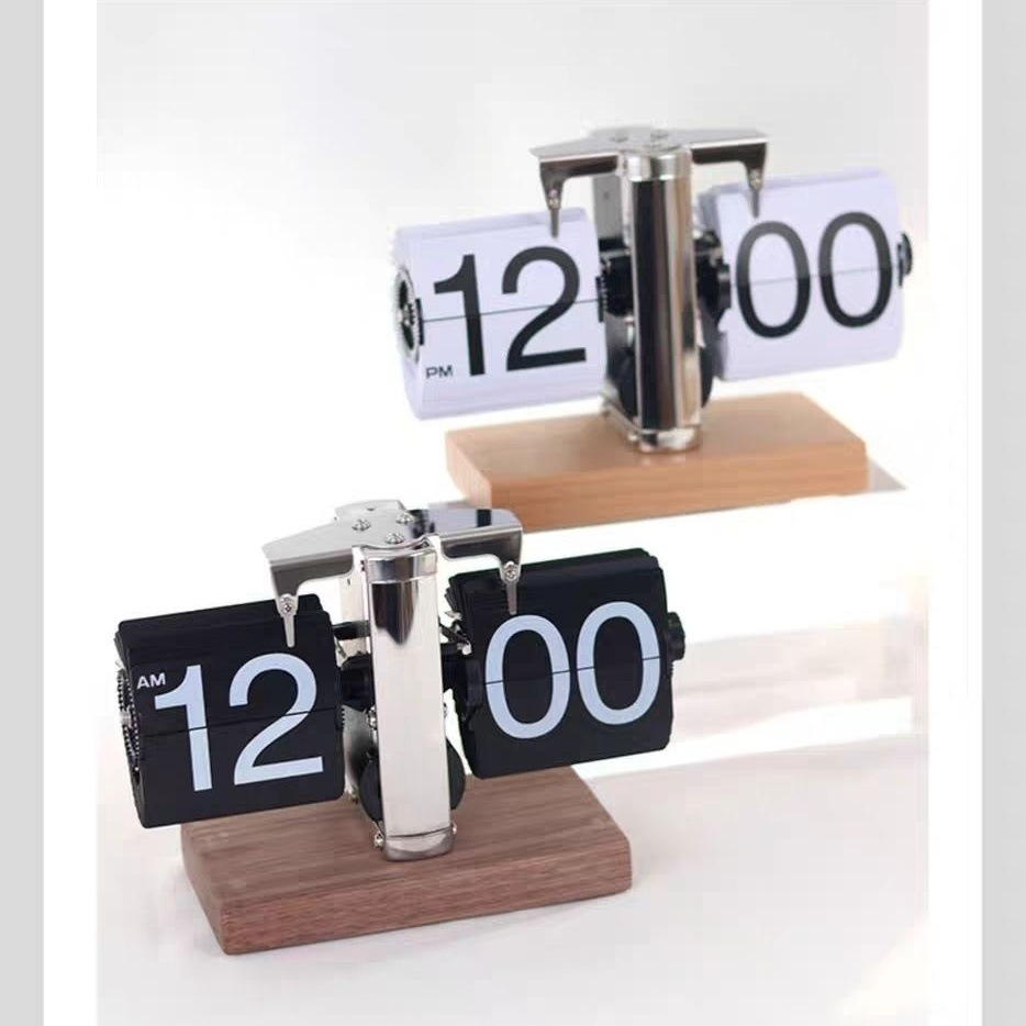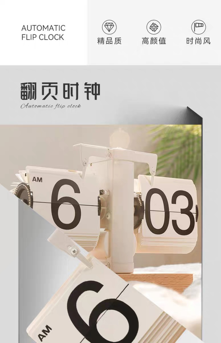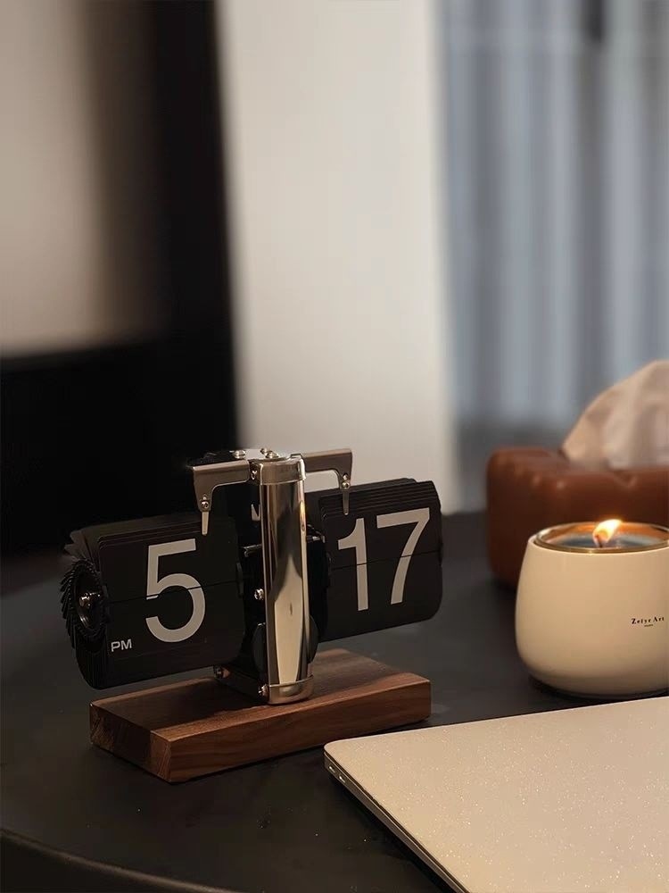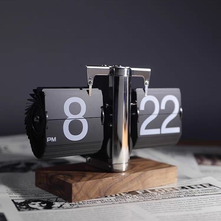 ∝ 고급 단단한 나무 다목적 자동 페이지 넘기기 시계 탁상 시계 장식품 복고풍 페이지 넘기기 시계 거실 크리 에이 티브 기계식 시계 선물스토어 가기