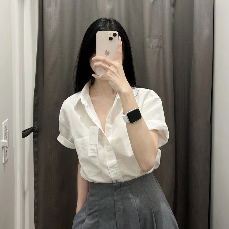 여름 새로운 반팔 셔츠 여성 일본 전문 얇은 느슨한 우아한 슬리밍 디자인 센스 화이트 트렌디 탑스토어 가기