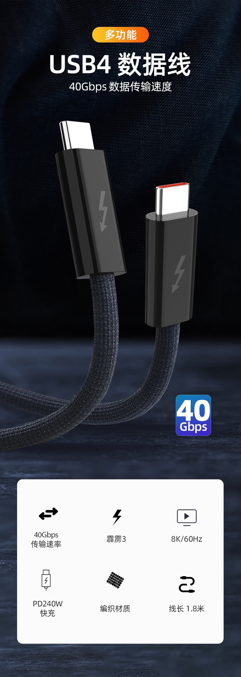 • USB4 240W8K40Gbps( 1m )