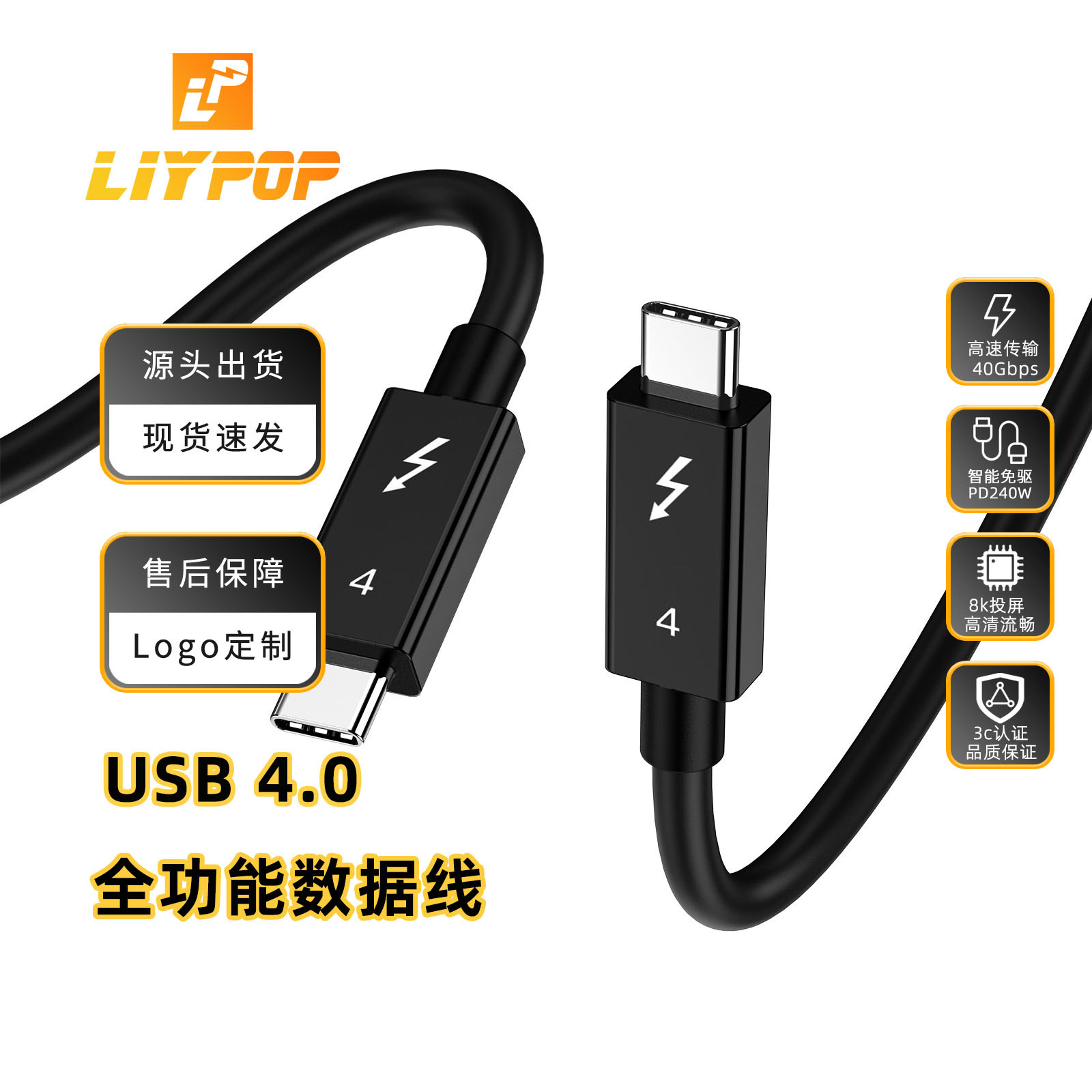 국경 간 Thunderbolt Type-C4 전체 기능 데이터 케이블 8K 스크린 프로젝션 USB4 비디오 40Gbps 고속 전송 케이블스토어 가기