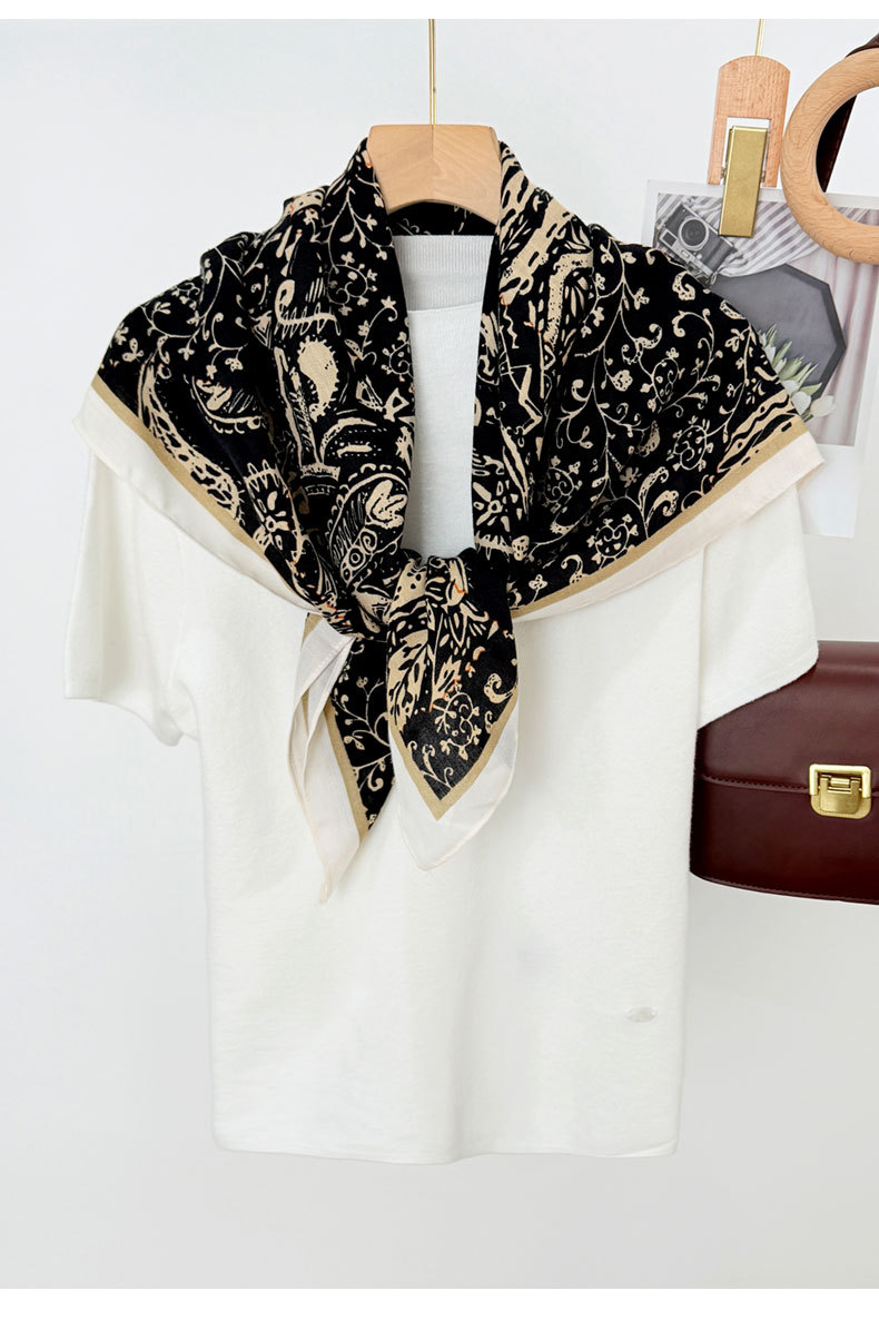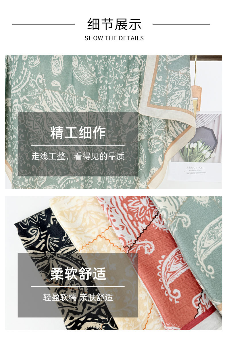 한국어 버전의 빈티지 패션 캐슈 너트 인쇄 90*90CM 작은 사각형 여성의 고급 실크 스카프 장식 스카프 전문 스카프스토어 가기