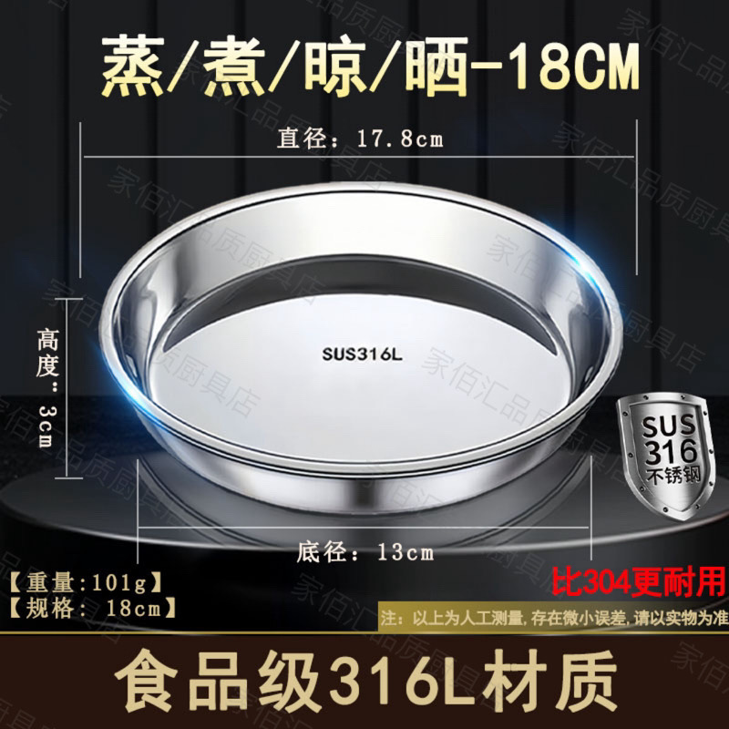 두꺼운 316L 스테인레스 스틸 접시 가정용 찜 야채 찜 냄비 평면 원형 접시 트레이 디너 접시 야채 접시 깊은 접시스토어 가기