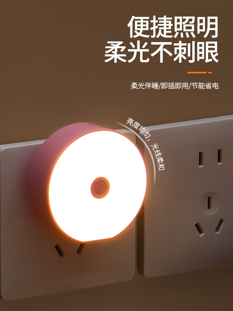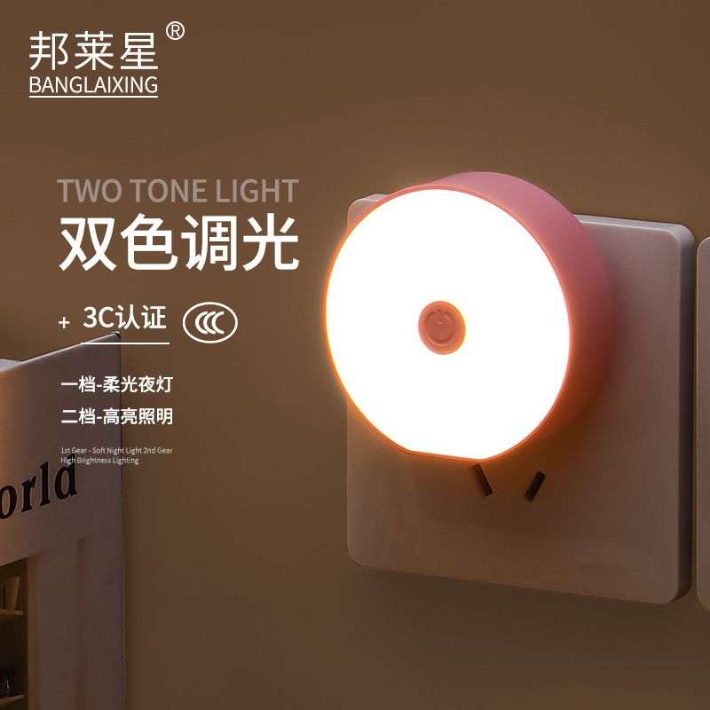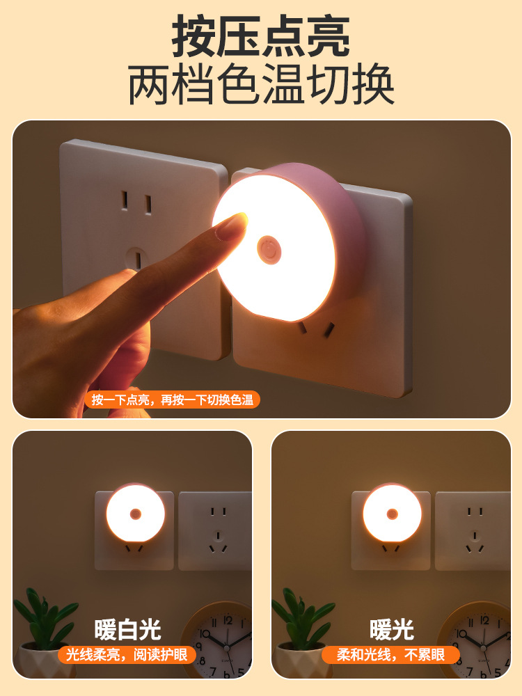 소스 공장 플러그인 스위치 듀얼 기어 디밍 따뜻한 빛 LED 에너지 절약 야간 조명 홈 복도 침실 수면 조명