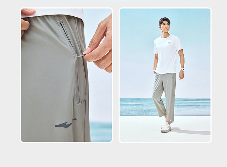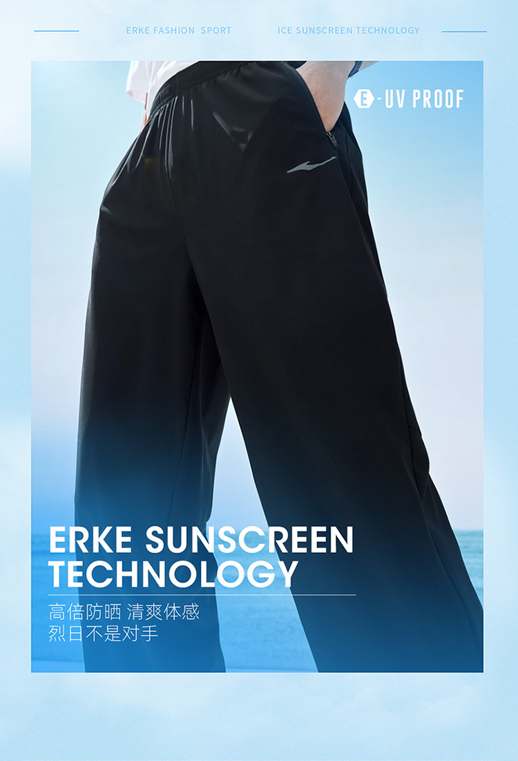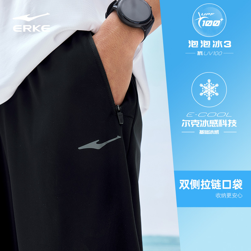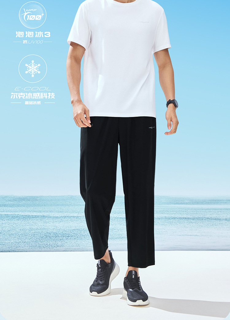 Hongxing Erke 스포츠 바지 남성용 자외선 차단 남성용 바지 2025 여름 새로운 얼음 느낌 스트레이트 통기성 스포츠 바지 UPF스토어 가기