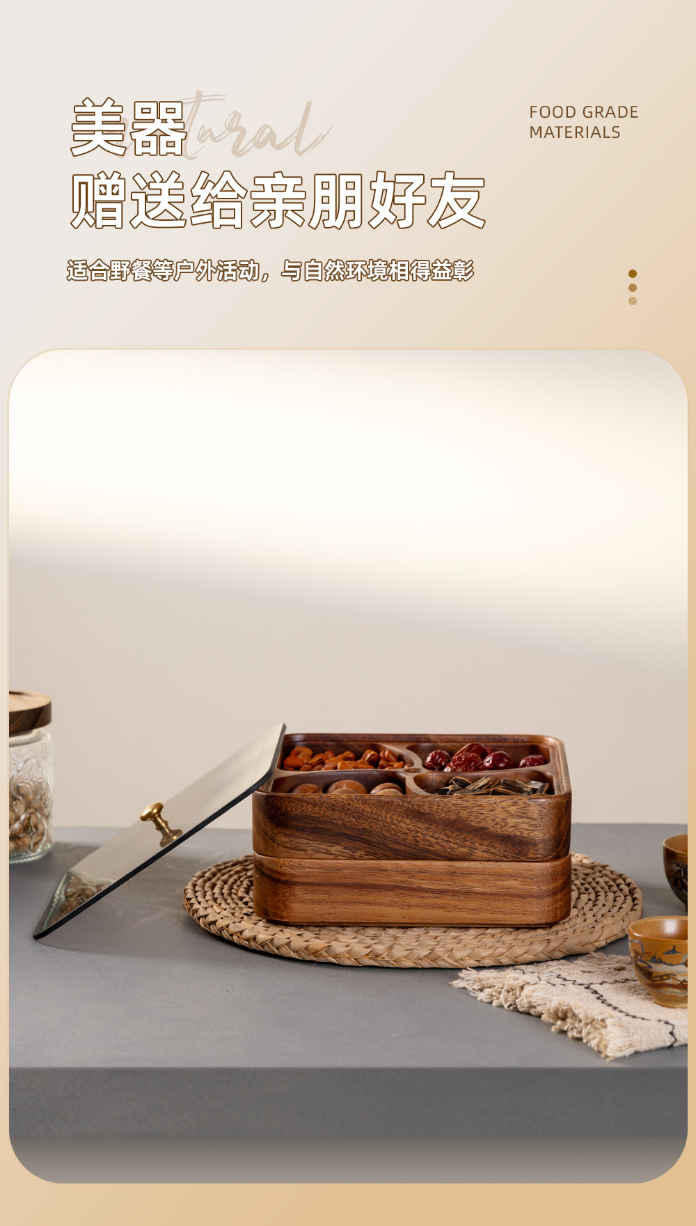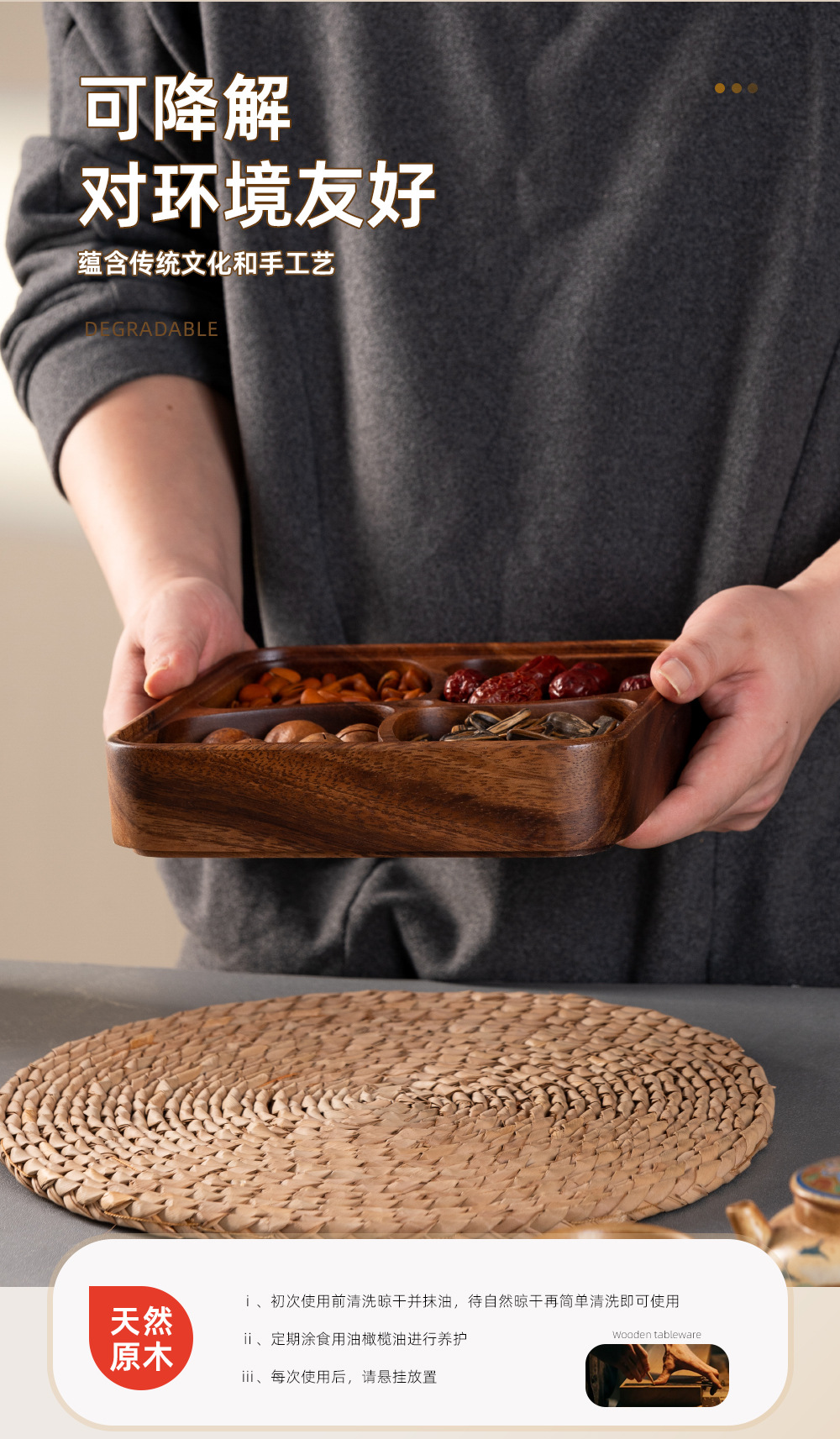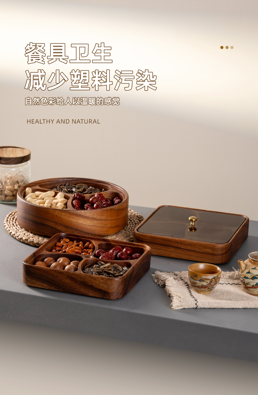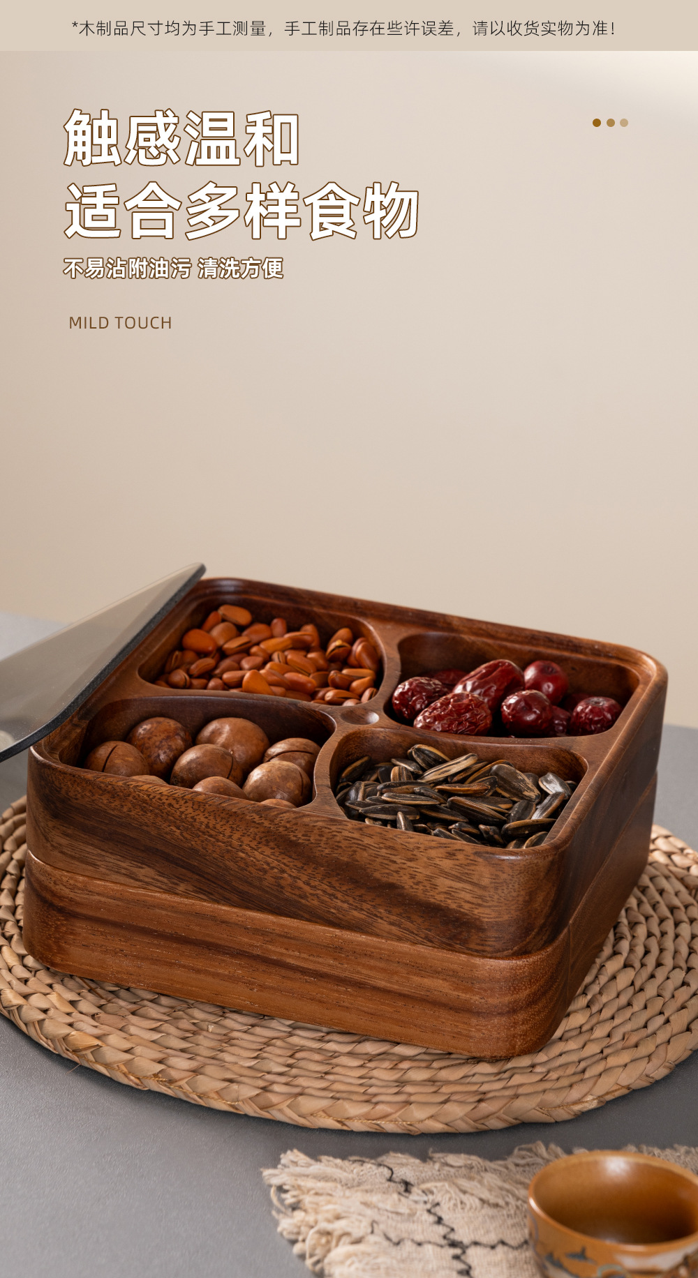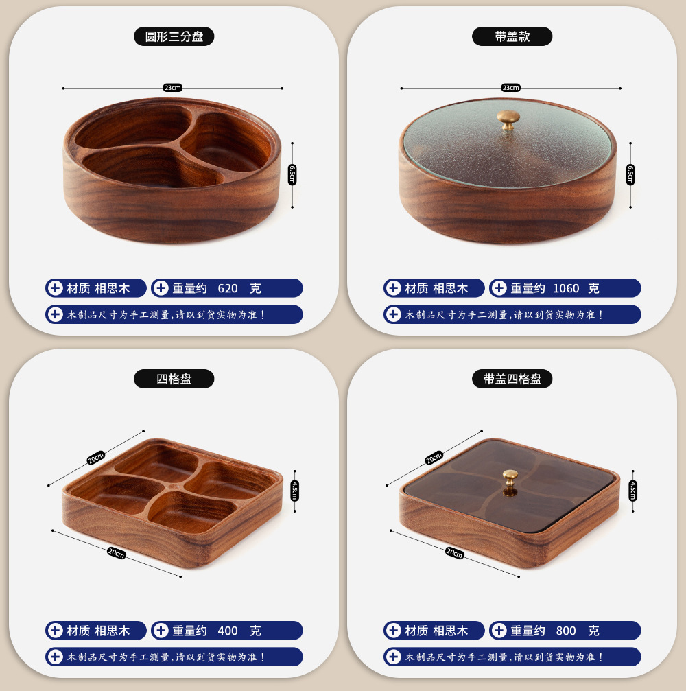 나무로 된 과일 접시, 아카시아 나무 델리 치즈 보드, 가정용 단단한 나무 전골 바베큐 소스 접시, 스낵 접시, 여러 칸