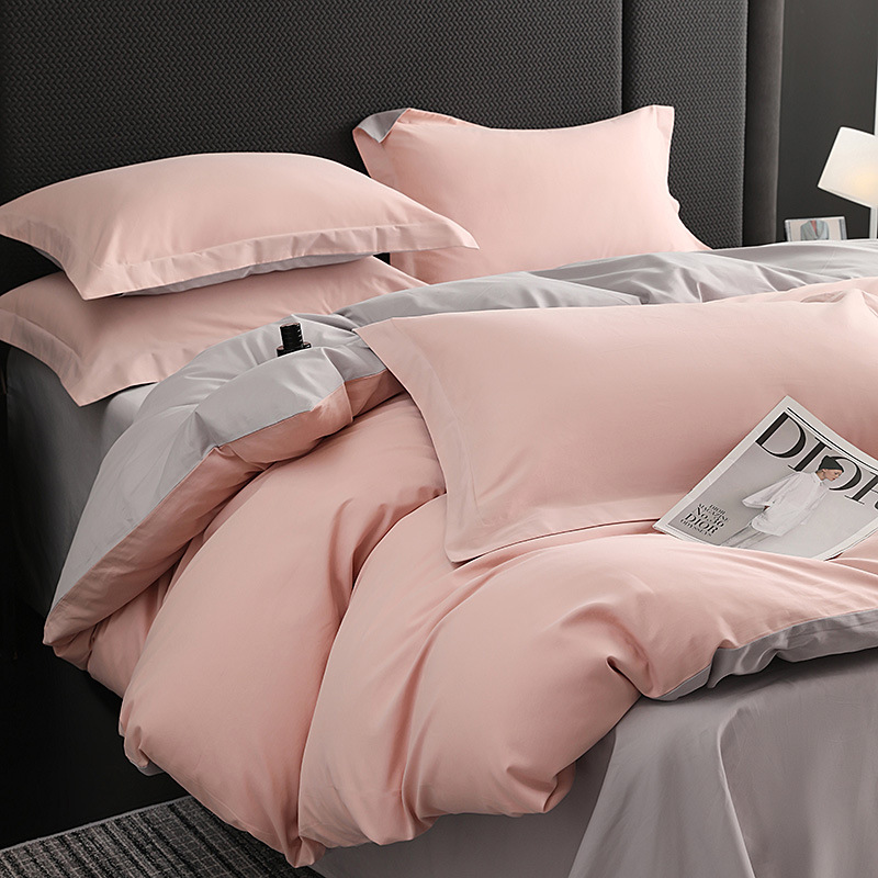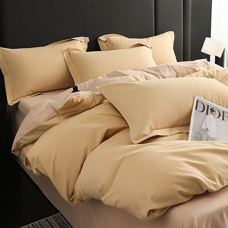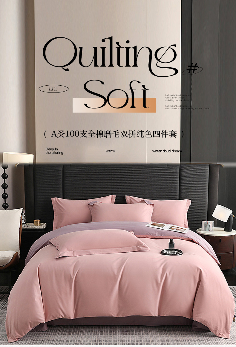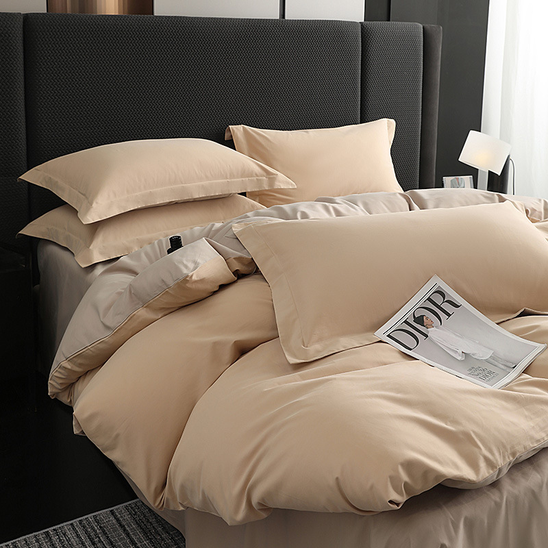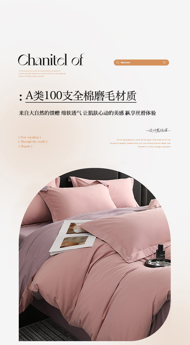 가벼운 럭셔리 100수 고급 침구 순면 솔리드 컬러 더블 두꺼운 기모 4피스 세트 순면 침대 시트 이불 커버 3피스 세트스토어 가기