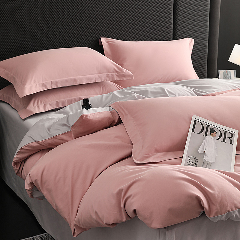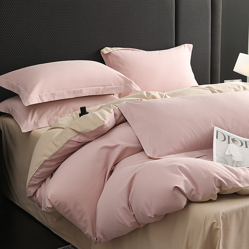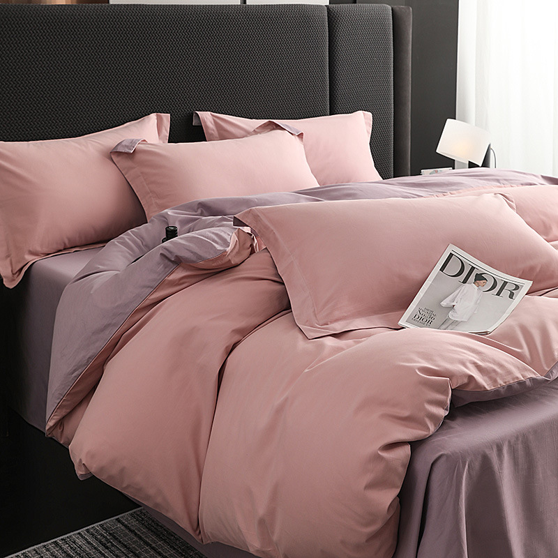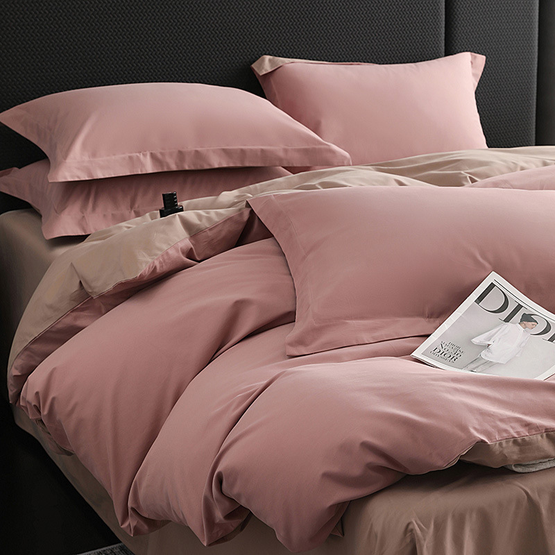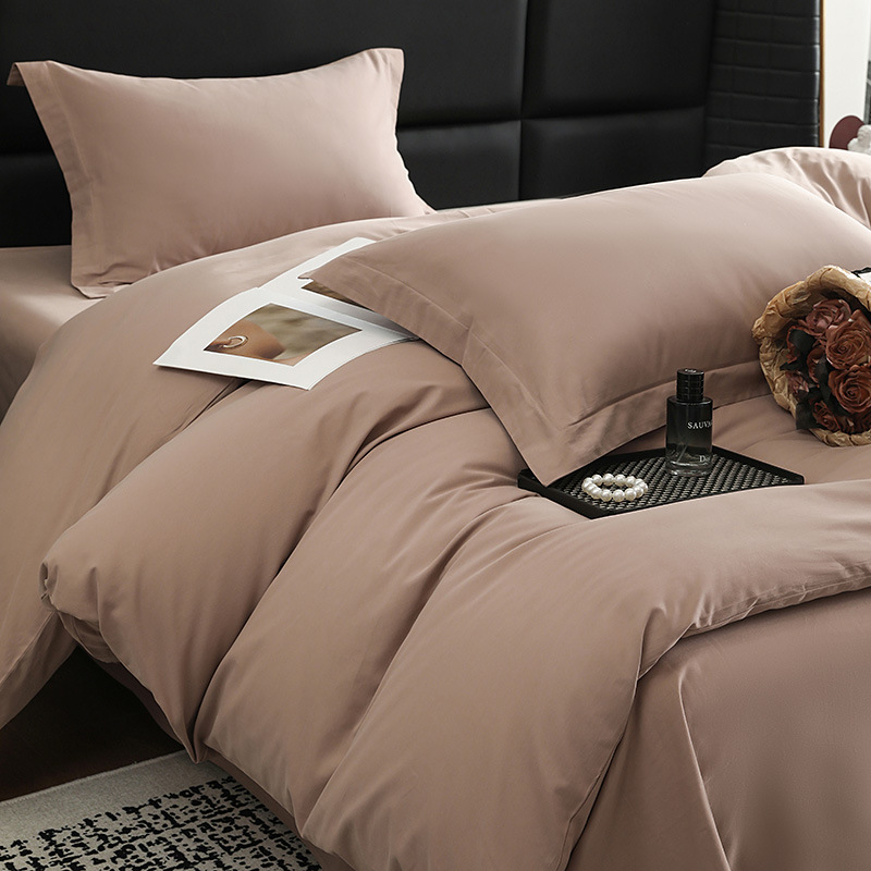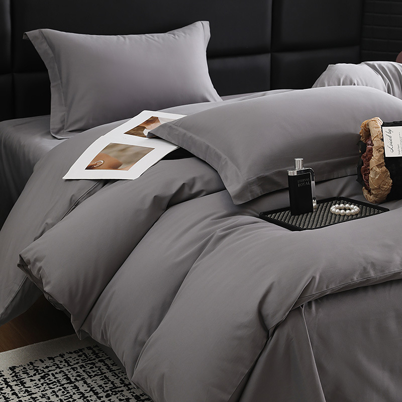 가벼운 럭셔리 100수 고급 침구 순면 솔리드 컬러 더블 두꺼운 기모 4피스 세트 순면 침대 시트 이불 커버 3피스 세트스토어 가기