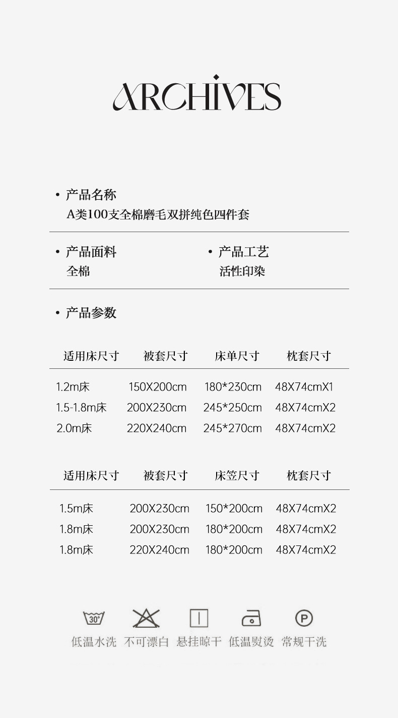 • 1.8m 침대 [시트 4개 세트] - 200x230cm 이불심에 적합
