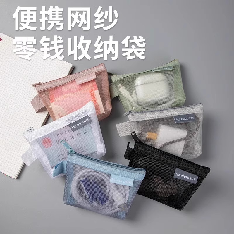 메쉬 화장품 가방, 립스틱, 메이크업 카드 가방, 휴대용 가방, 소형 여성용 데이터 케이블, 이어폰 내부 보관스토어 가기