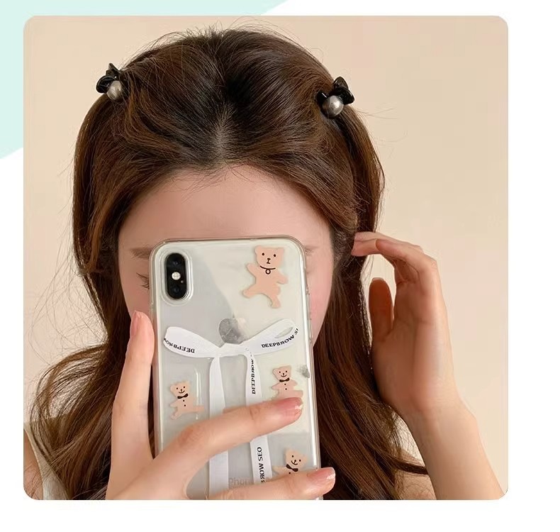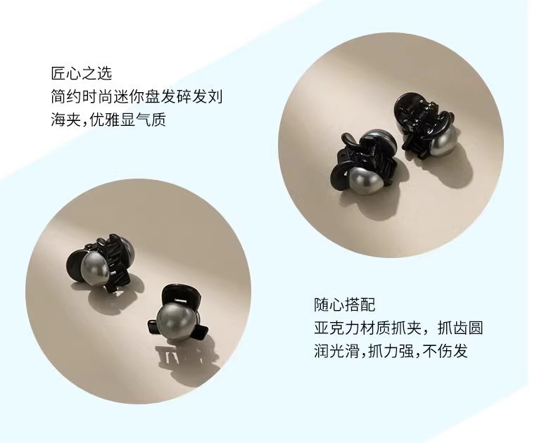 귀여운 미니 뱅 헤어핀 여성용 서문 고급 블랙 라운드 비드 사이드 클립 작은 게 클립 깨진 헤어 클립 헤드웨어스토어 가기