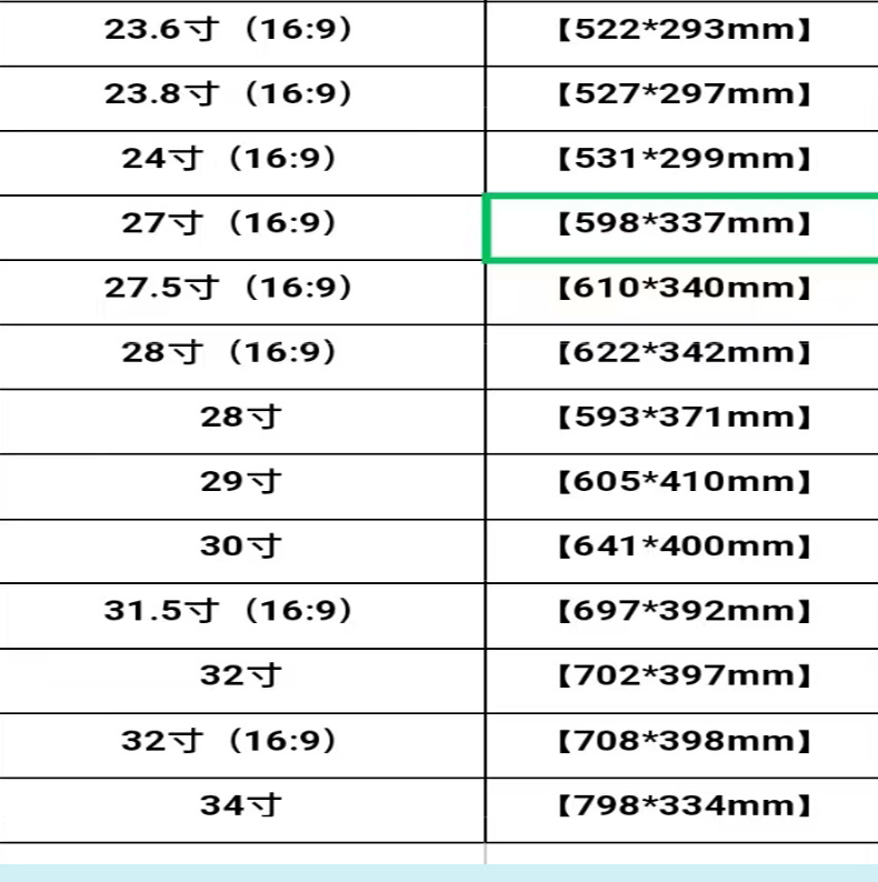 • 23.6/ 23.8inch 【16:09】(543mm*316mm)