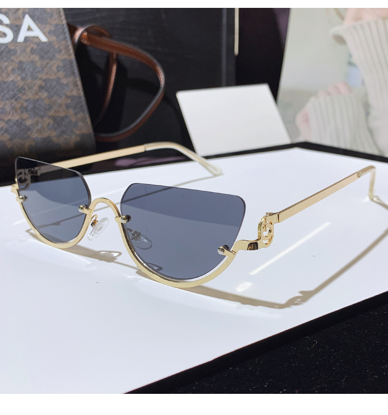 유럽과 미국 스타일의 복고풍 패션 하프 프레임 고양이 눈 선글라스 여성 선글라스 남성 패션 새로운 금속 g 홈 크로스 보더 y2k