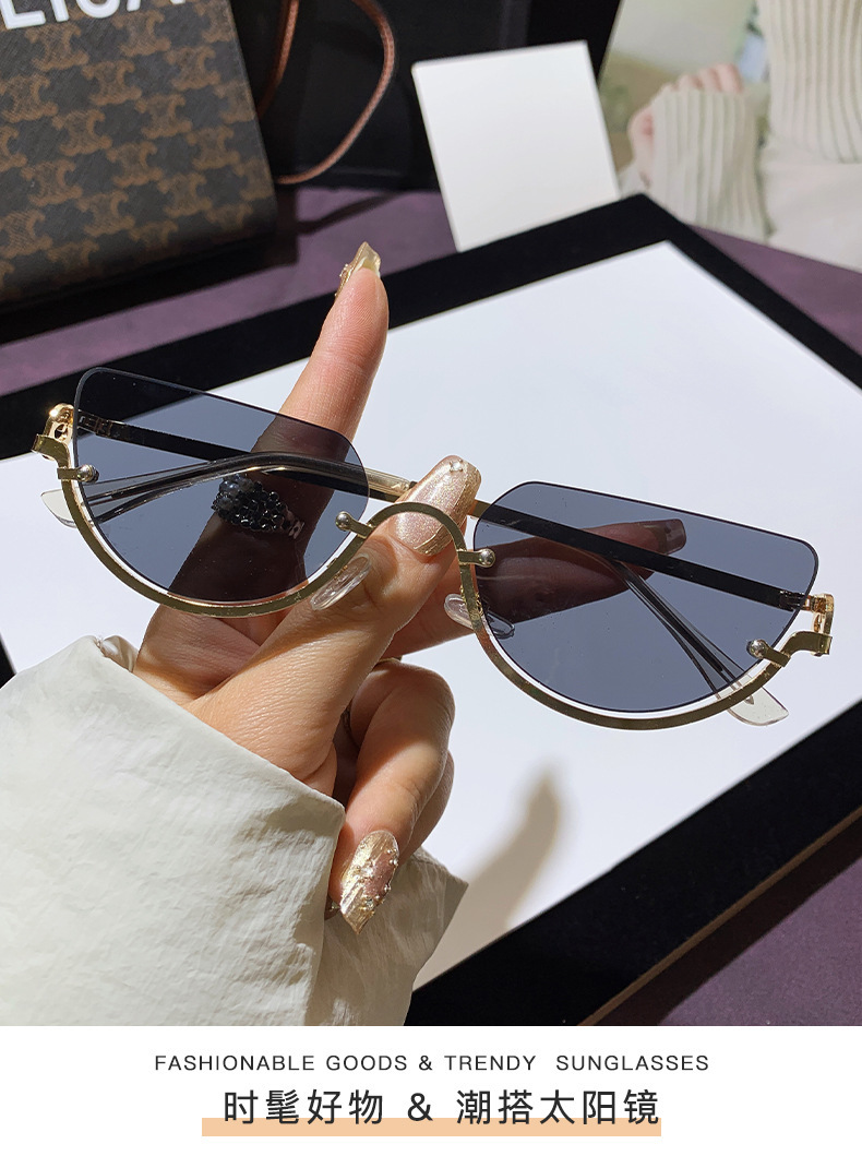 유럽과 미국 스타일의 복고풍 패션 하프 프레임 고양이 눈 선글라스 여성 선글라스 남성 패션 새로운 금속 g 홈 크로스 보더 y2k스토어 가기