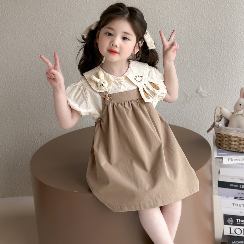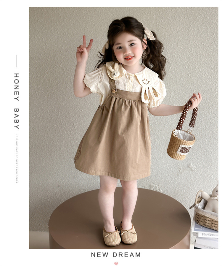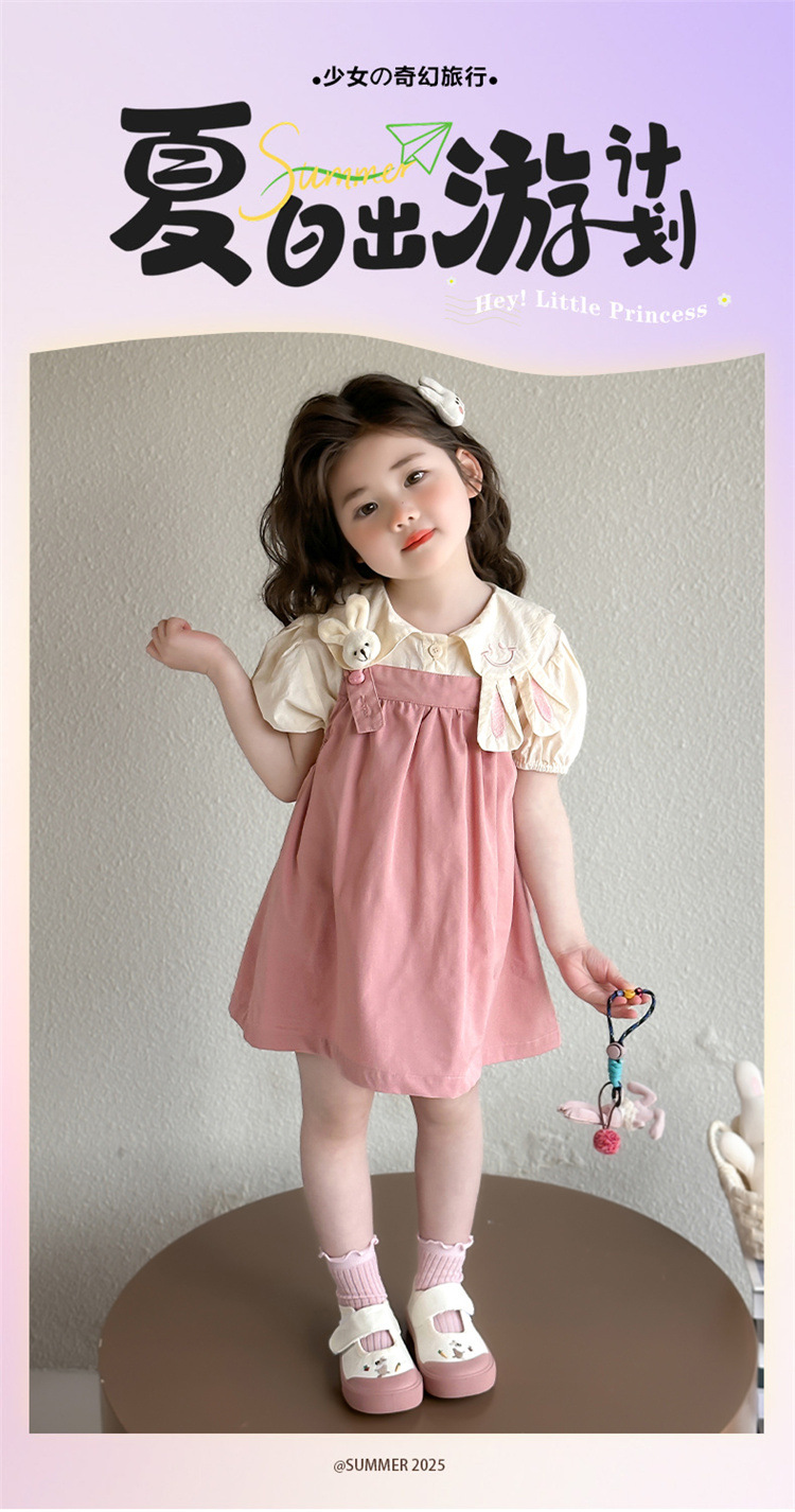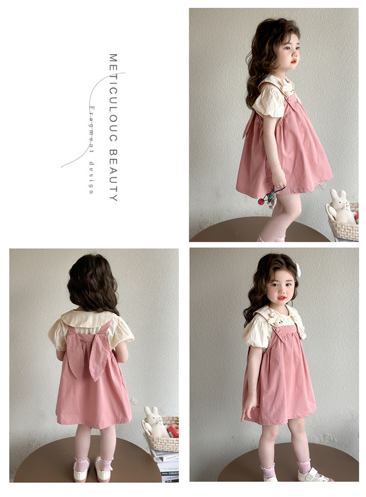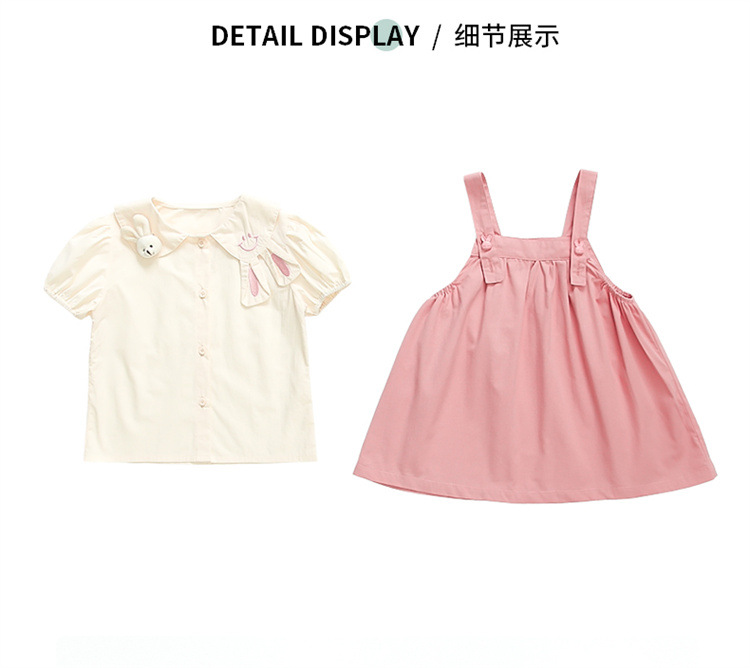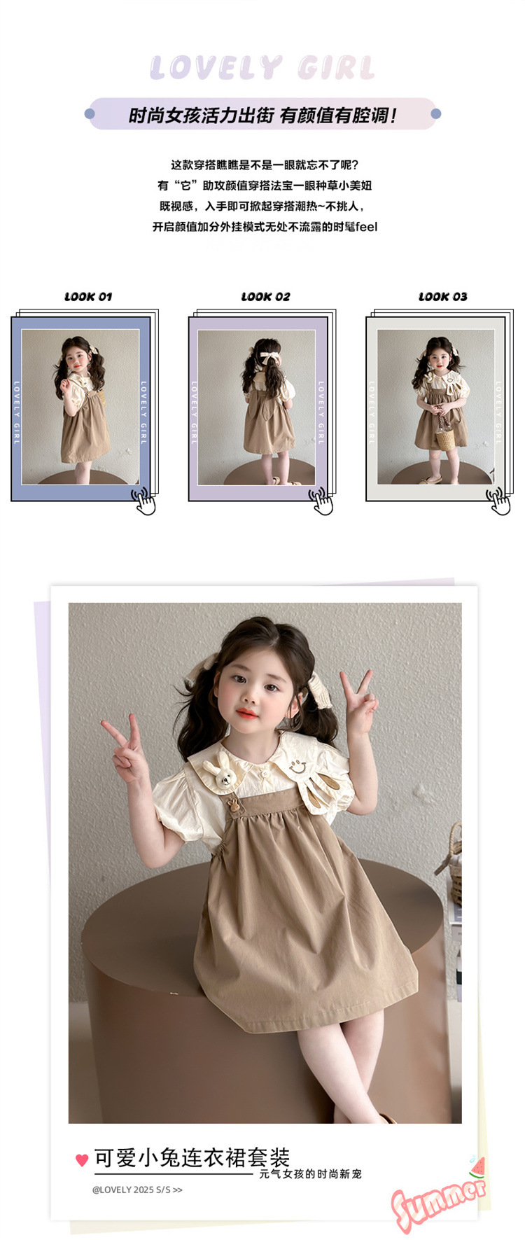 소녀의 토끼 스트랜드 스커트 투피스 세트 2025 여름 새로운 패션 소녀의 세련된 세트 어린이 여름 원피스스토어 가기