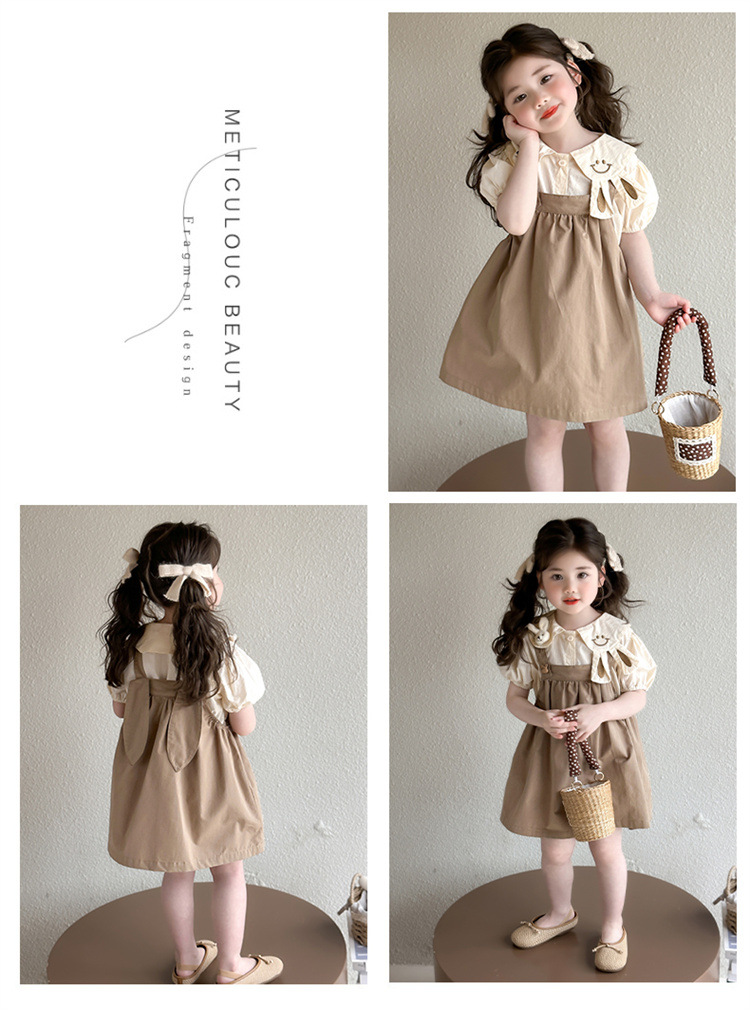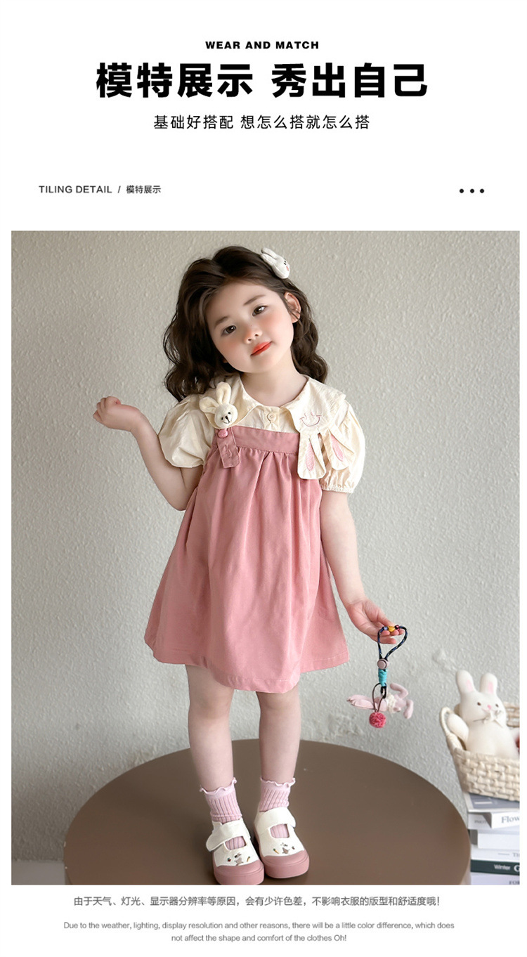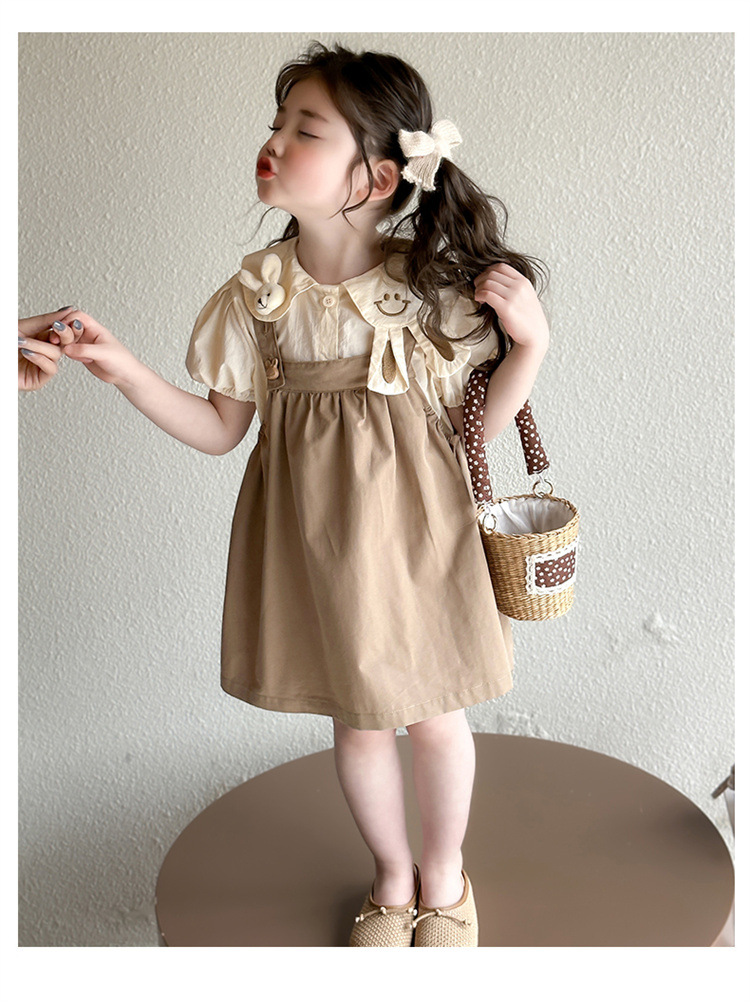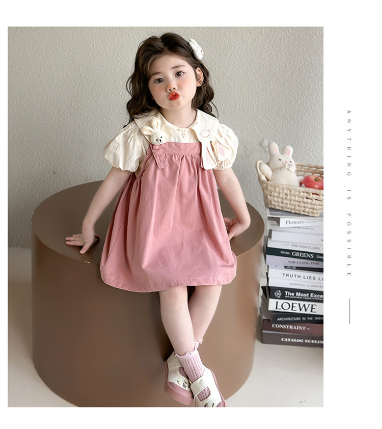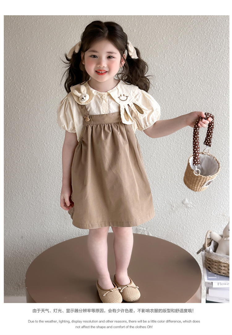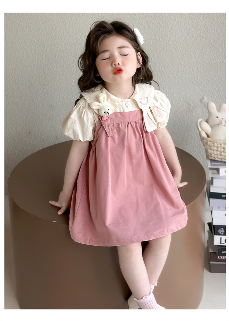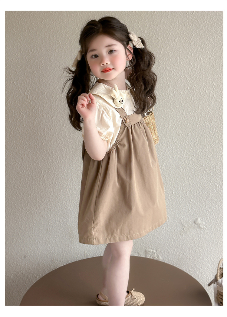 소녀의 토끼 스트랜드 스커트 투피스 세트 2025 여름 새로운 패션 소녀의 세련된 세트 어린이 여름 원피스스토어 가기