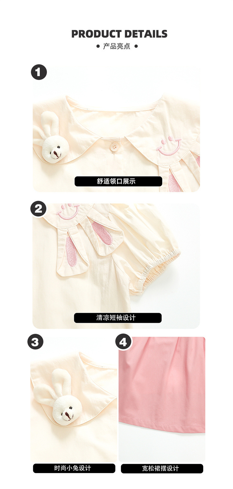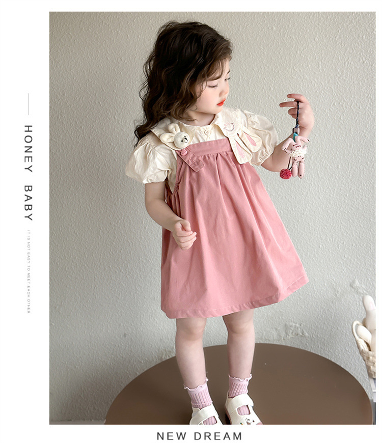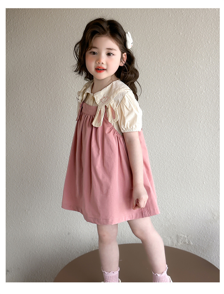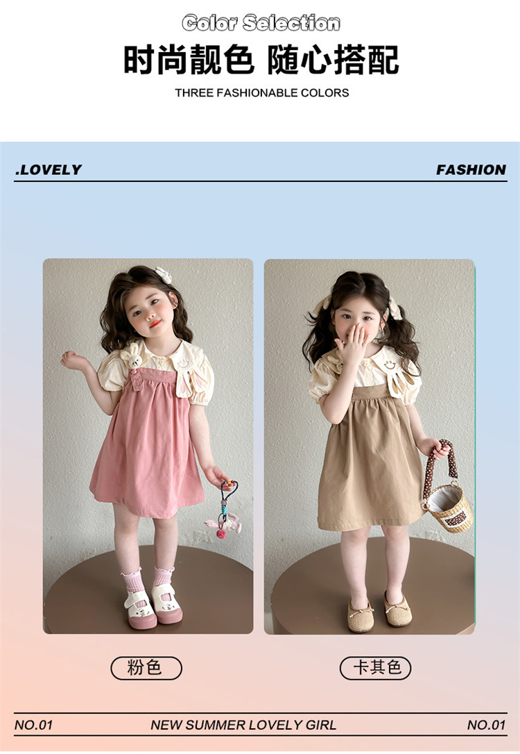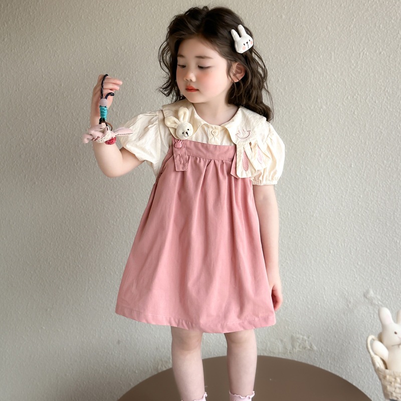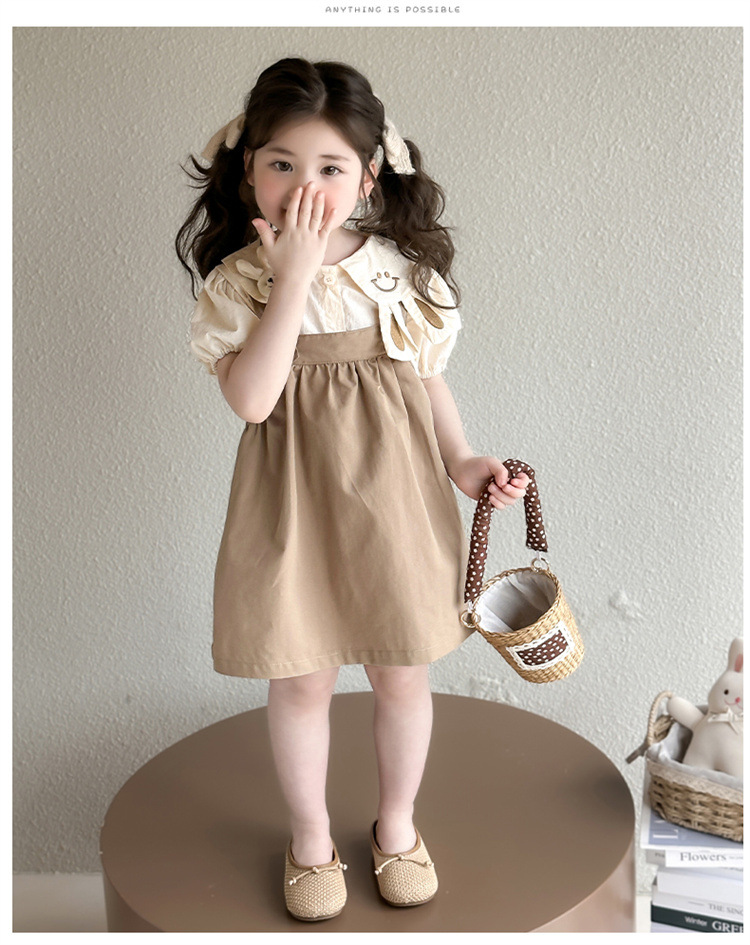 소녀의 토끼 스트랜드 스커트 투피스 세트 2025 여름 새로운 패션 소녀의 세련된 세트 어린이 여름 원피스스토어 가기