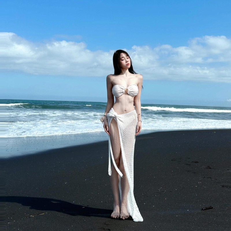 섹시 블로거의 같은 스타일 리틀 레드북 튜브탑 홀터넥 비키니 망사 롱 스커트 섬 휴가 온천욕스토어 가기
