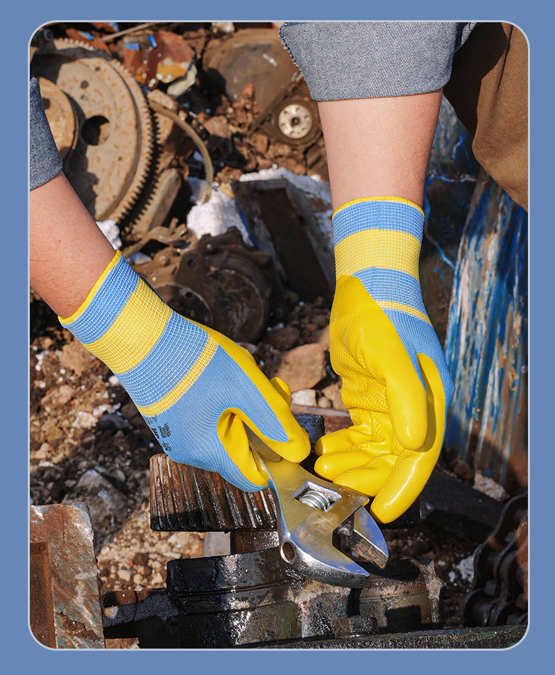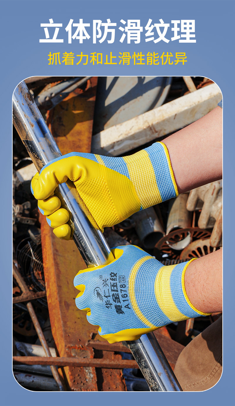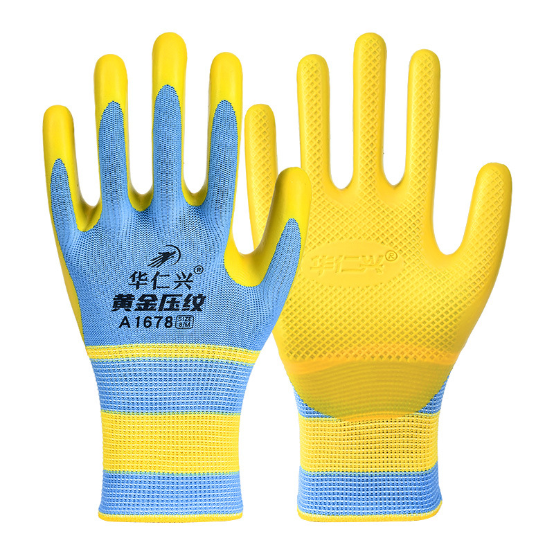 노동 보호 장갑 물리적 양각 라텍스 미끄럼 방지 내마모성 안전 보호 장갑 작업장 작업자 손 보호 장갑스토어 가기
