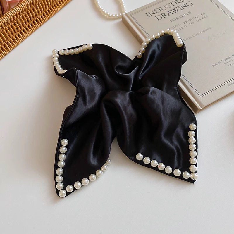 • 펄 새틴 스퀘어 스카프 - 블랙