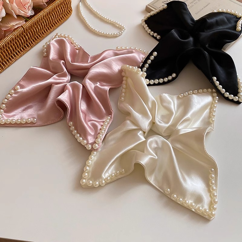 • 펄 새틴 스퀘어 스카프 소시지 링-코리안 핑크