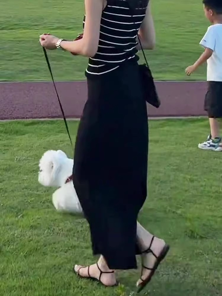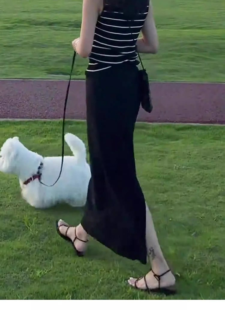 한국식 심플 올매치 치마 2025 봄과 여름 새 스타일 캐주얼 매일 통근 우아한 올매치 스플릿 롱 스커트스토어 가기