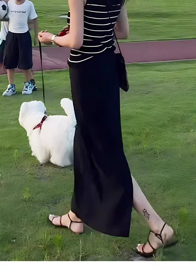 한국식 심플 올매치 치마 2025 봄과 여름 새 스타일 캐주얼 매일 통근 우아한 올매치 스플릿 롱 스커트