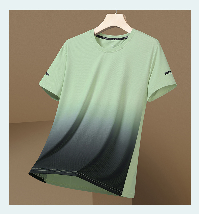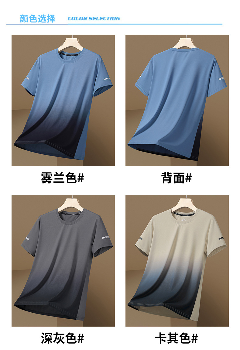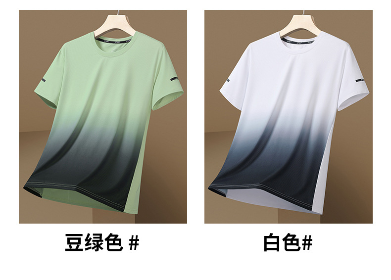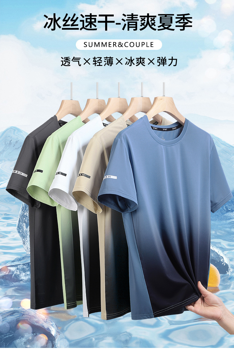 25 년 여름 새로운 얼음 실크 티셔츠 남성 그라디언트 인쇄 위장 빠른 건조 통기성 티셔츠 청소년 둥근 목 짧은 소매 솔리드스토어 가기