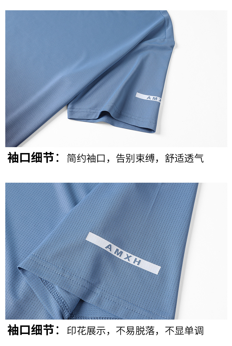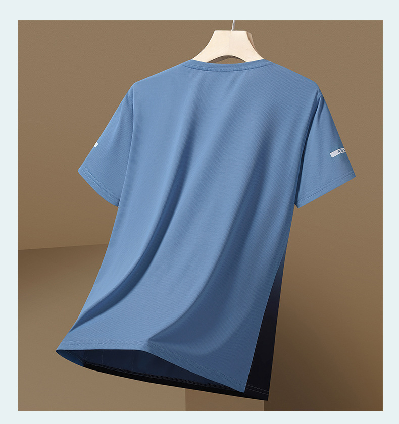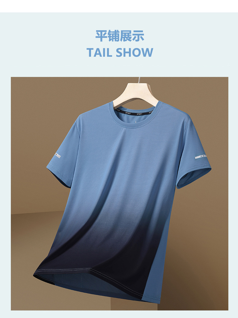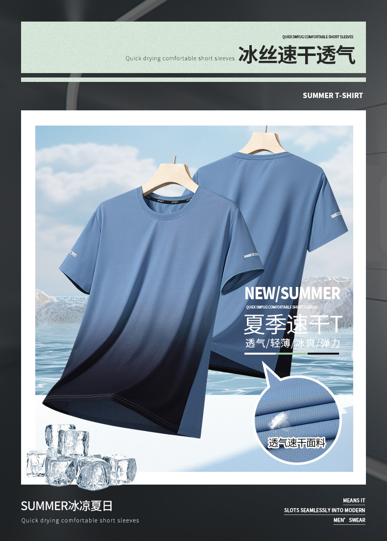 25 년 여름 새로운 얼음 실크 티셔츠 남성 그라디언트 인쇄 위장 빠른 건조 통기성 티셔츠 청소년 둥근 목 짧은 소매 솔리드스토어 가기