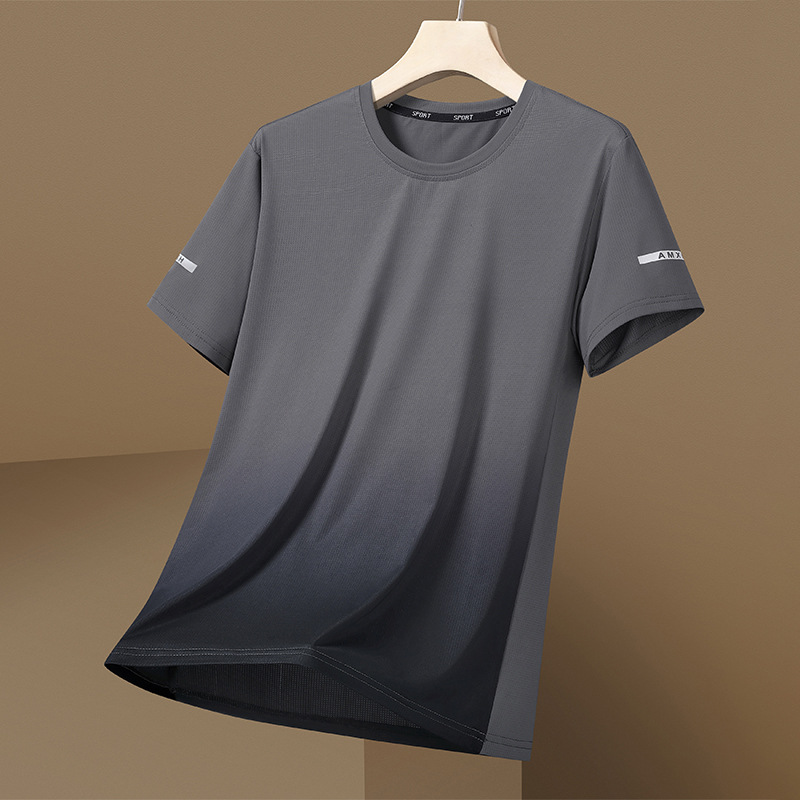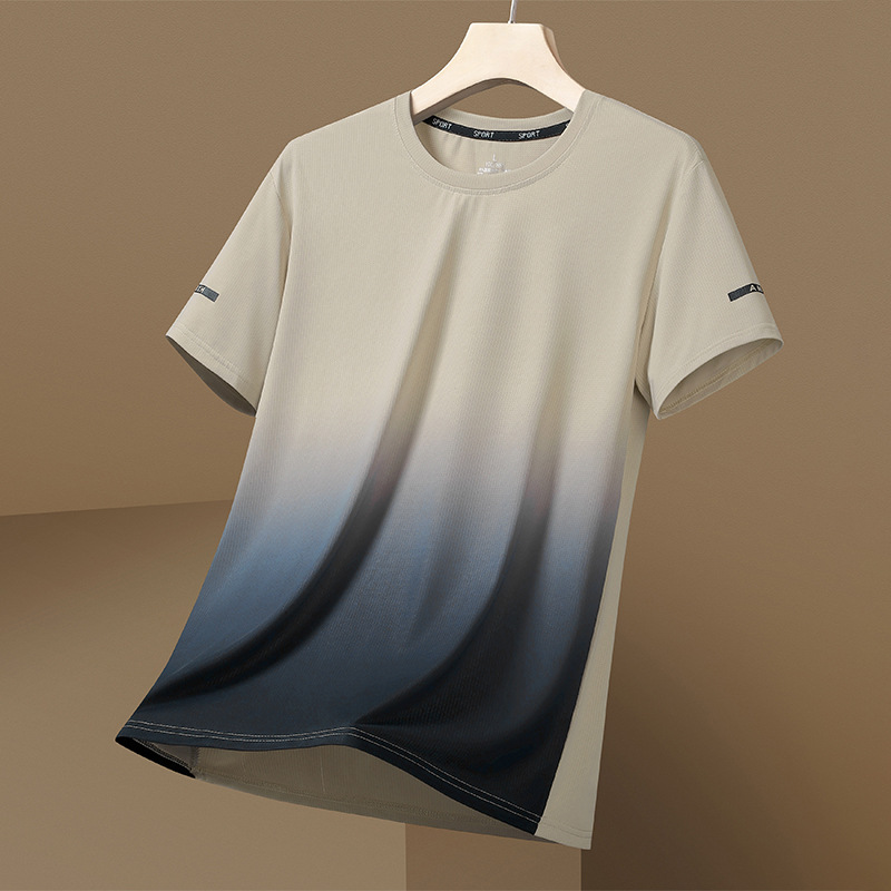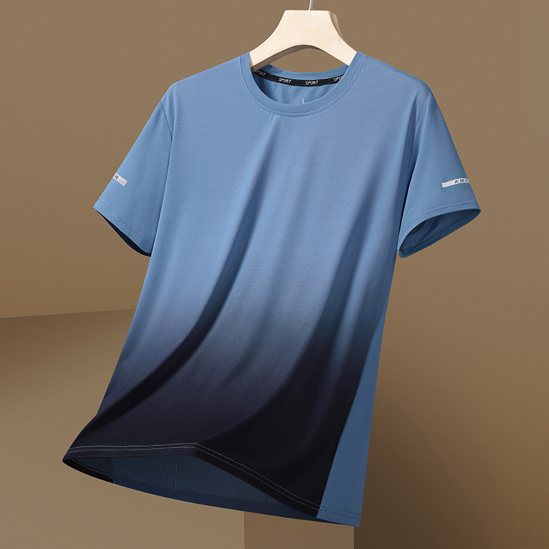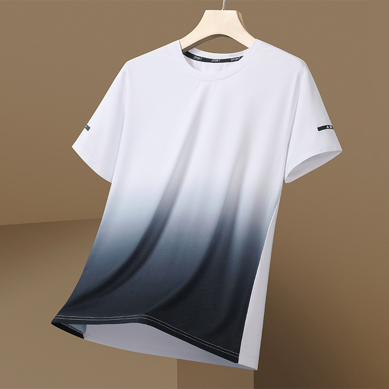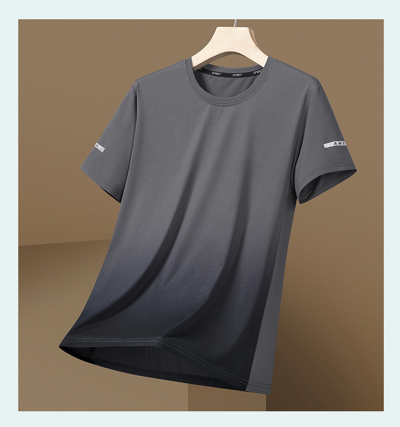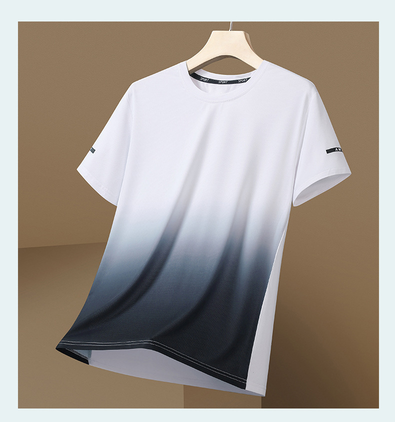 25 년 여름 새로운 얼음 실크 티셔츠 남성 그라디언트 인쇄 위장 빠른 건조 통기성 티셔츠 청소년 둥근 목 짧은 소매 솔리드