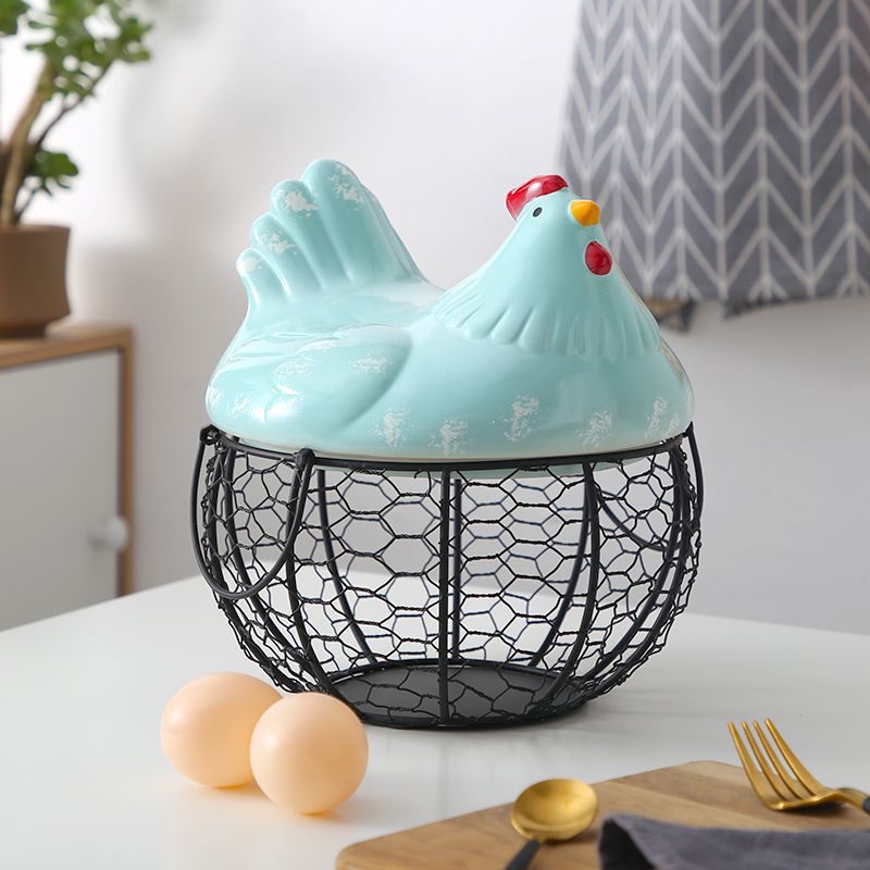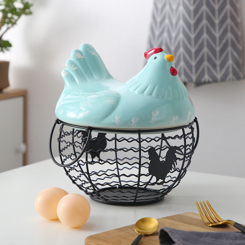 세라믹 계란 바구니, 과일 바구니, 잡화, 파란색 세라믹 주방 선반, 창의적인 수납 철 바구니, 철 수납 바구니스토어 가기