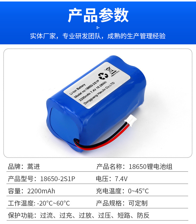 18650 리튬 배터리 팩 7.4V2200mAh 모바일 전원 블루투스 오디오 뷰티 기기 충전식 고속 배터리