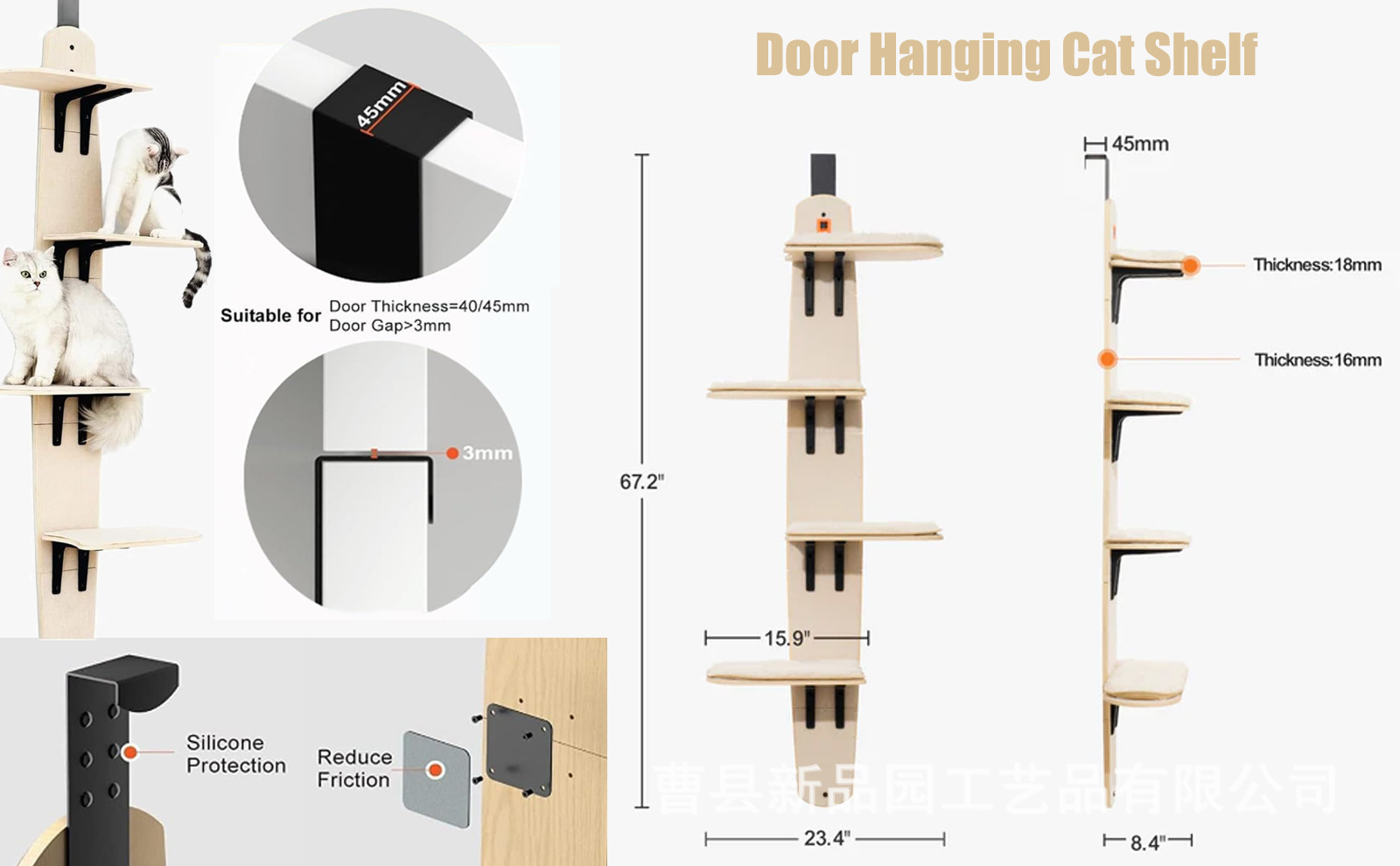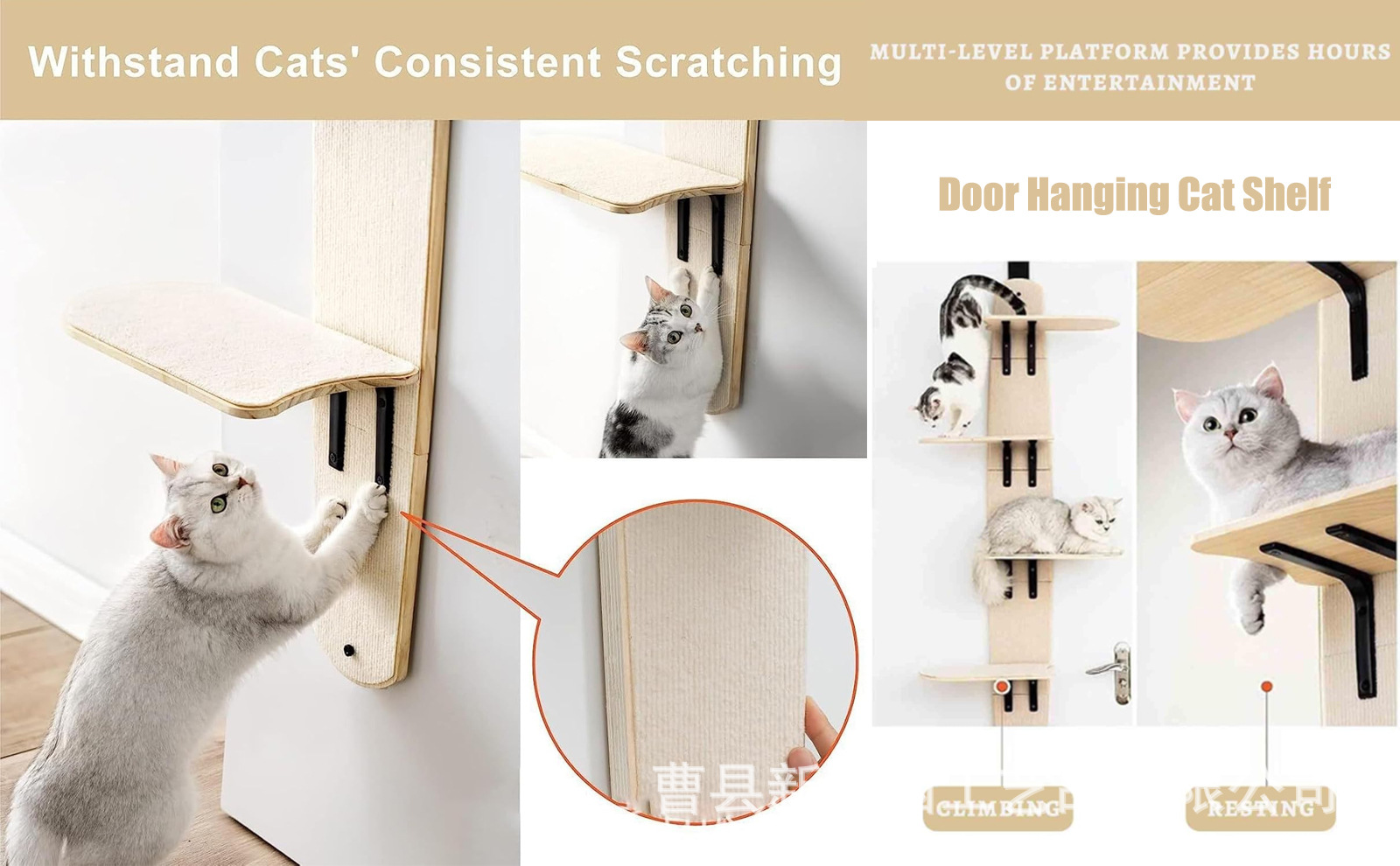 단단한 나무 문 뒤에 있는 다층 고양이 클라이밍 프레임, 대형 고양이를 위한 특수 클라이밍 프레임, 애완용 고양이 클라이밍 프레임, 단단한 나무 고양이 장난감 점프 플랫폼