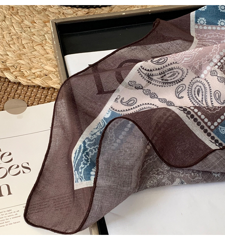 빈티지 컬러 블록 캐슈 플라워 코튼 리넨 헤어 밴드 실크 스카프 작은 스퀘어 스카프 여성의 봄과 가을 스카프 넥타이 가방 장식 스카프스토어 가기