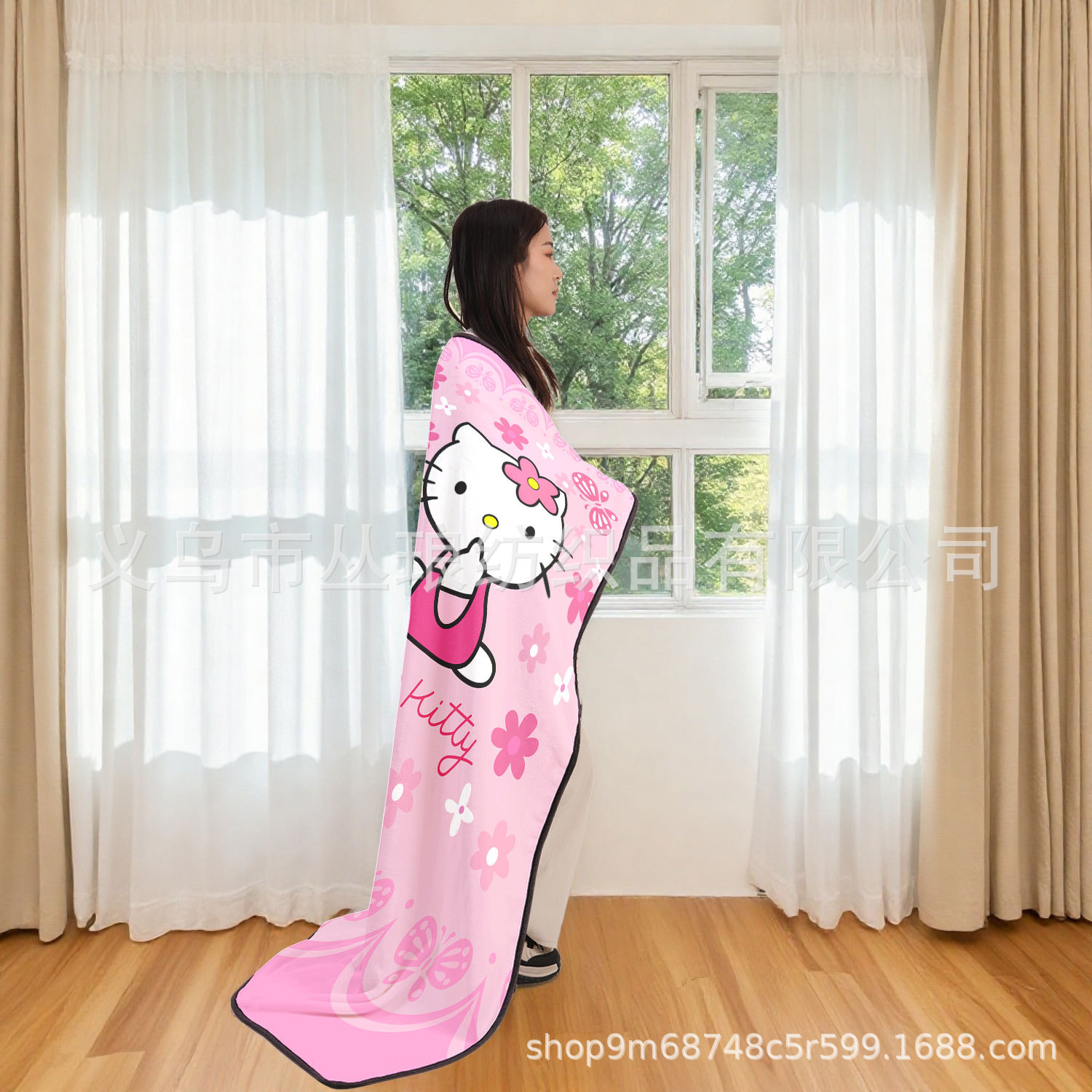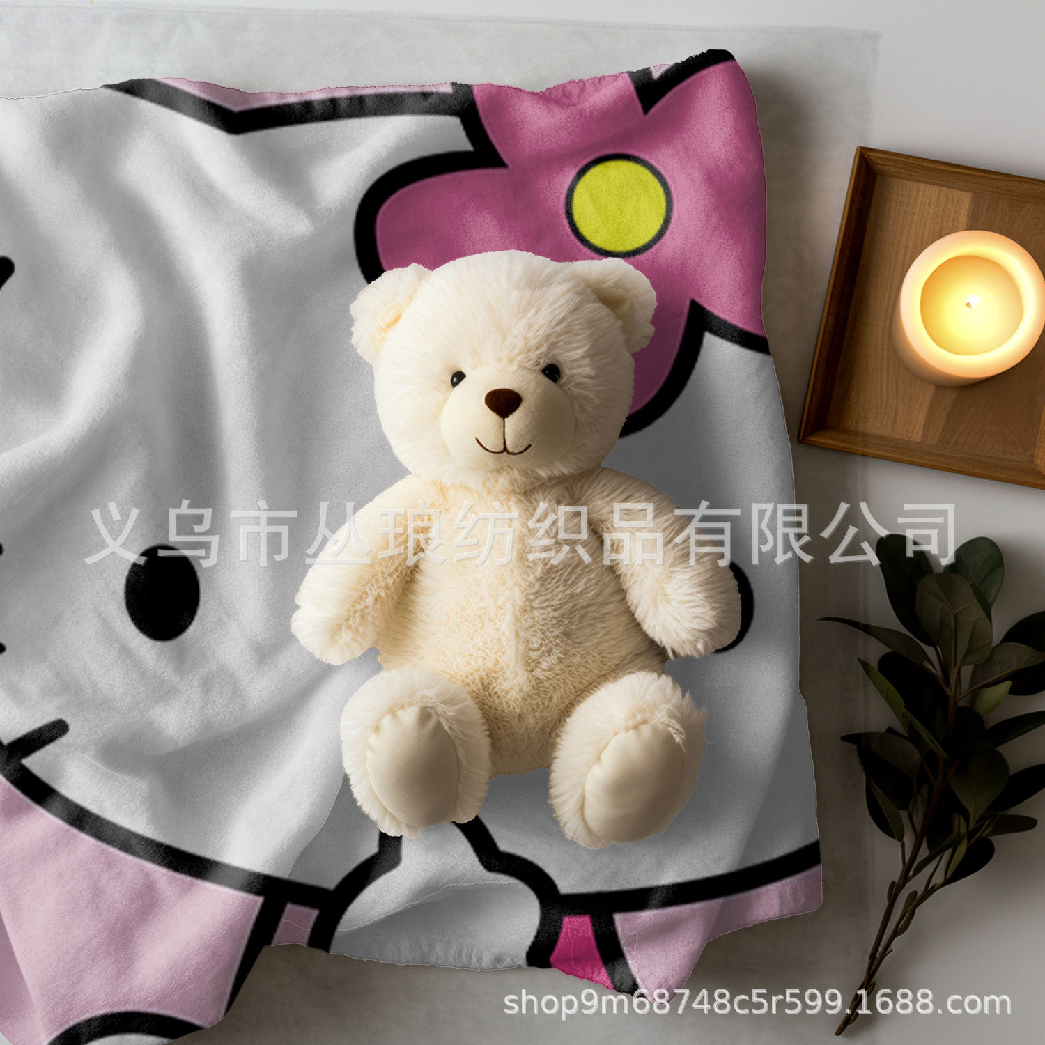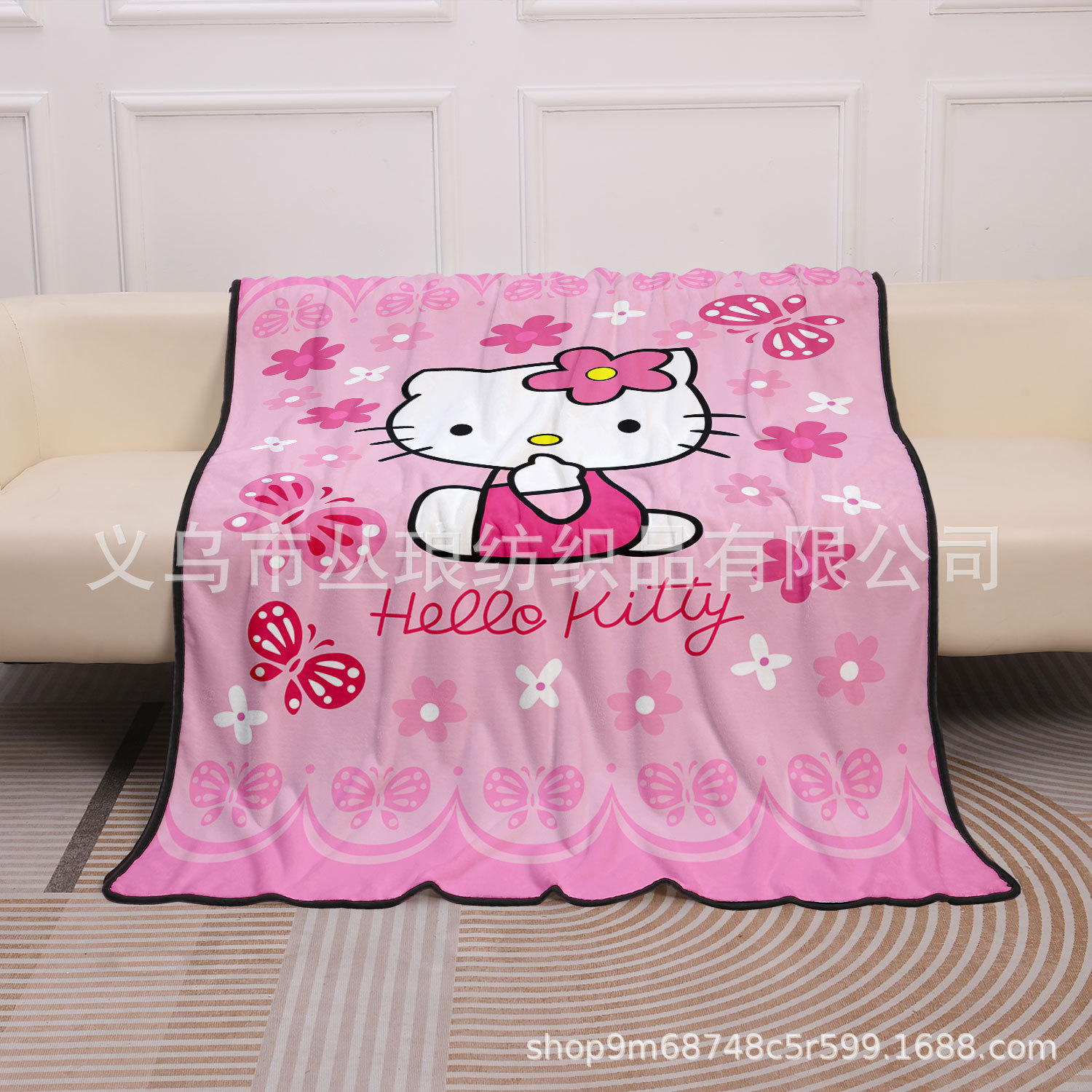 Amazon Cross-Border TEMU 인기 블랙 엣지 키티 애니메이션 담요 프린트 점심 담요는 사진으로 인쇄될 수 있습니다.