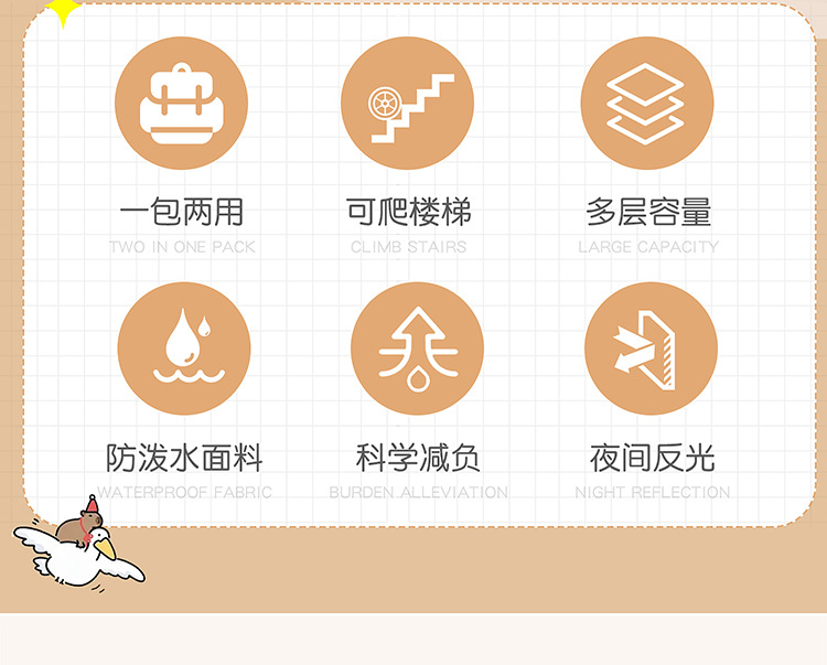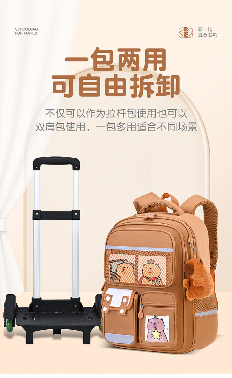 새로운 Kappi Bala Trolley Schoolbag 대용량 만화 어린이 Schoolbag 3 ~ 6 학년 배낭 도매