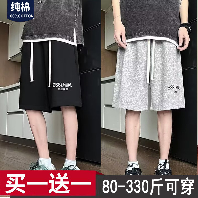 수정 된 플러스 사이즈 코튼 반바지 남성용 여름 캐주얼 중간 길이 바지 트렌디 한 브랜드 느슨한 외부 착용 플러스 사이즈 스포츠 바지스토어 가기