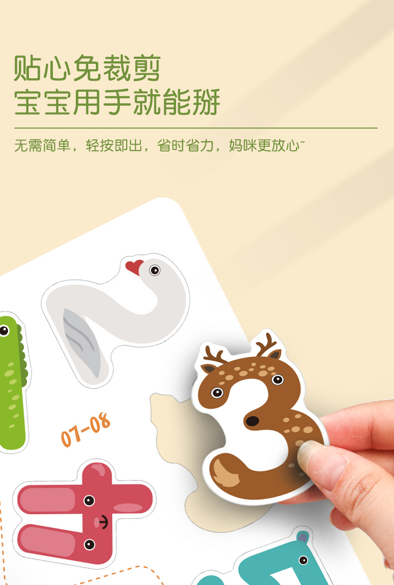국경 간 새로운 아기 찢어진 책 아기 어린이 조용한 손으로 찢어진 책 스티커 몬테소리 조기 교육 붙여 넣기 책 1-3 세 장난감