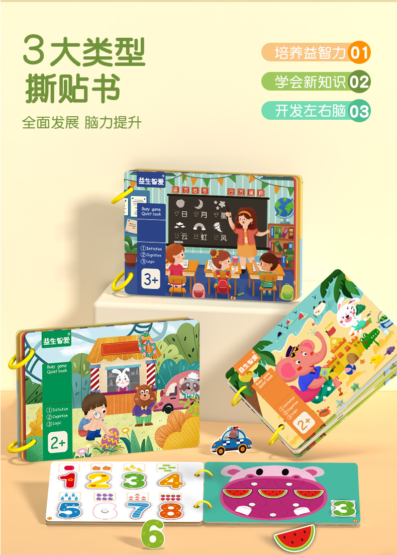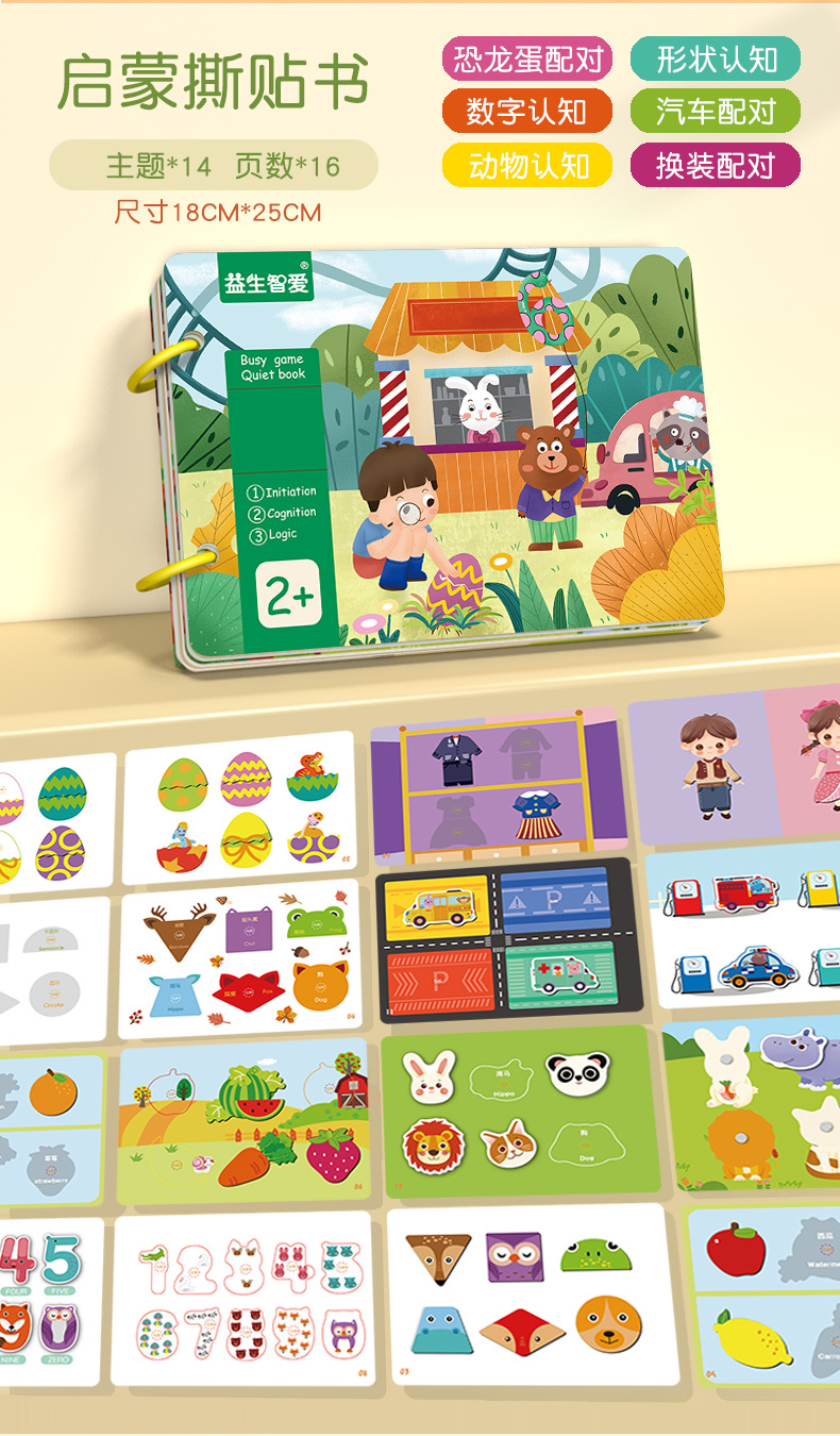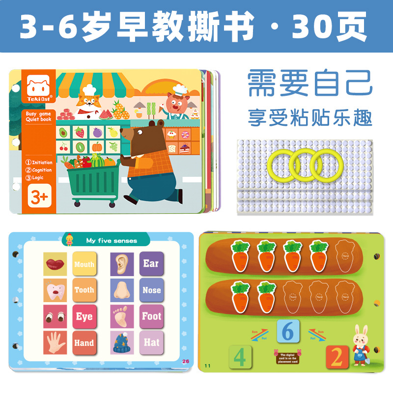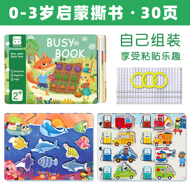 국경 간 새로운 아기 찢어진 책 아기 어린이 조용한 손으로 찢어진 책 스티커 몬테소리 조기 교육 붙여 넣기 책 1-3 세 장난감스토어 가기