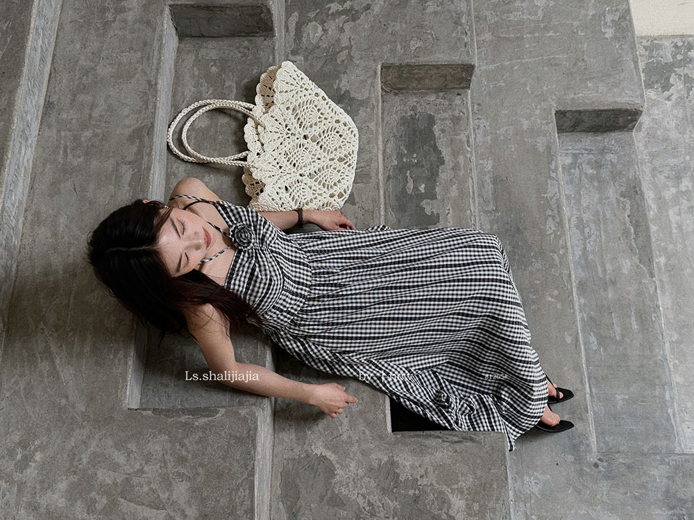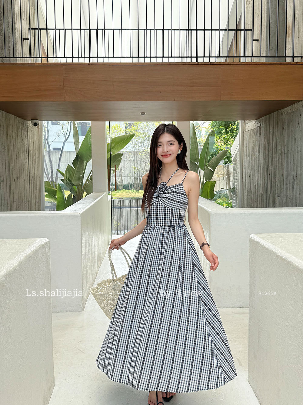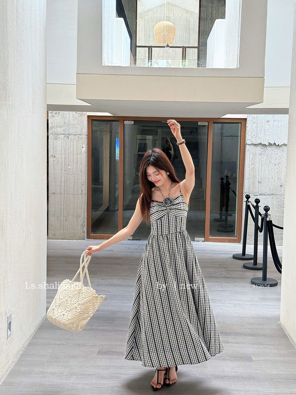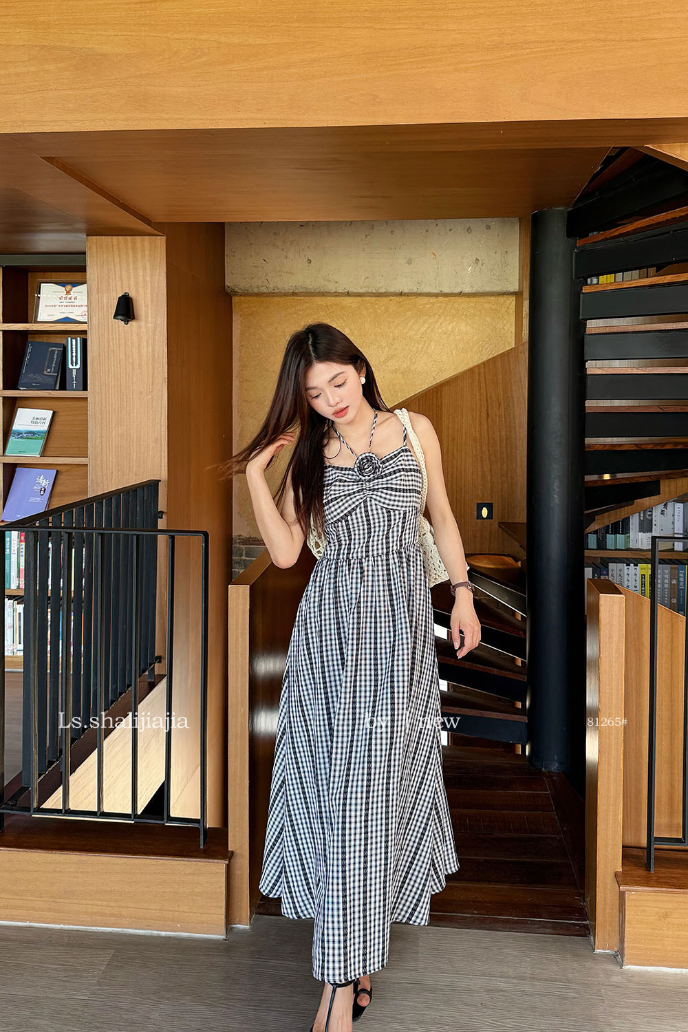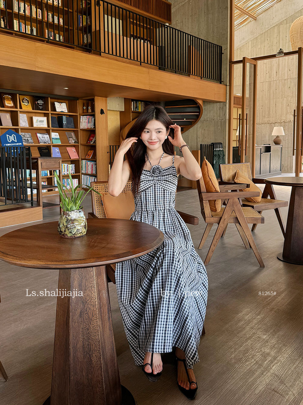 LS는 홀리데이 스타일 체크 무늬 스트라이프 원피스 25 년 여름 새로운 허리 슬림 원피스 여성 81265
