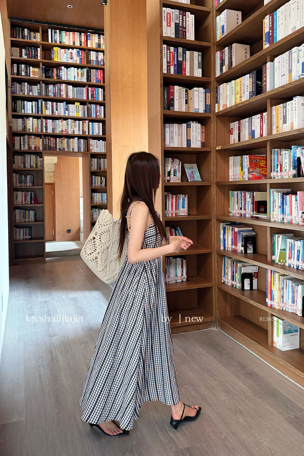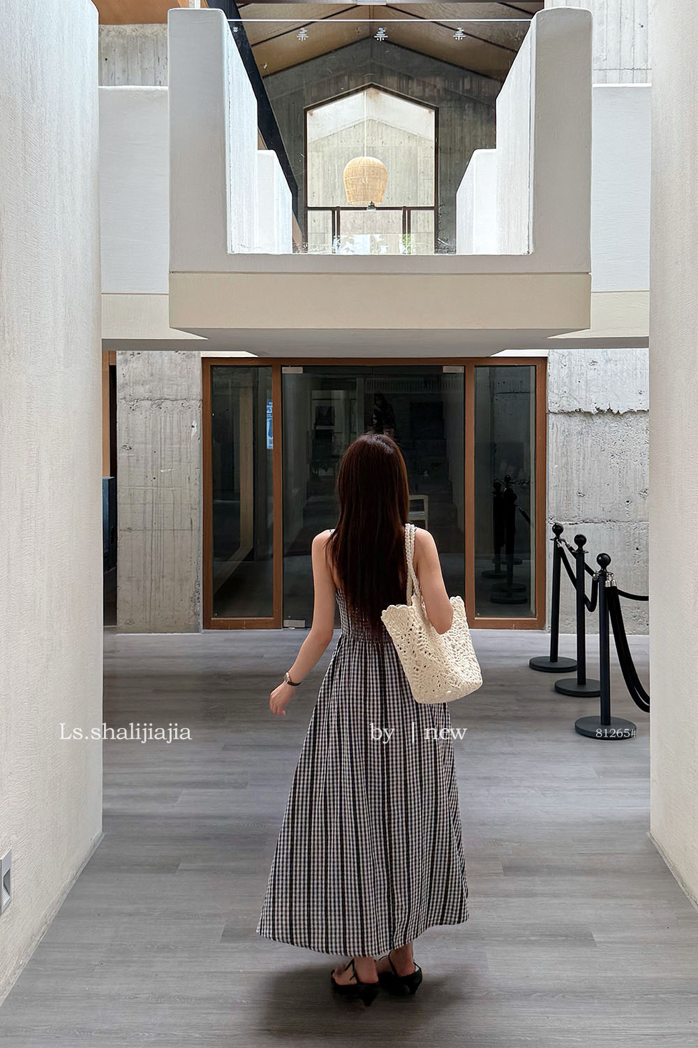 LS는 홀리데이 스타일 체크 무늬 스트라이프 원피스 25 년 여름 새로운 허리 슬림 원피스 여성 81265스토어 가기
