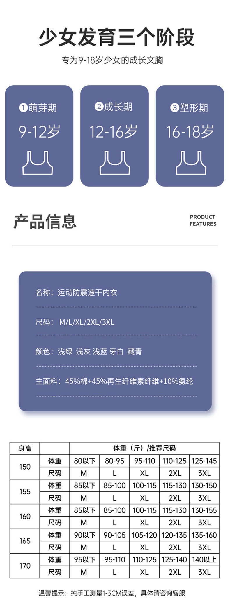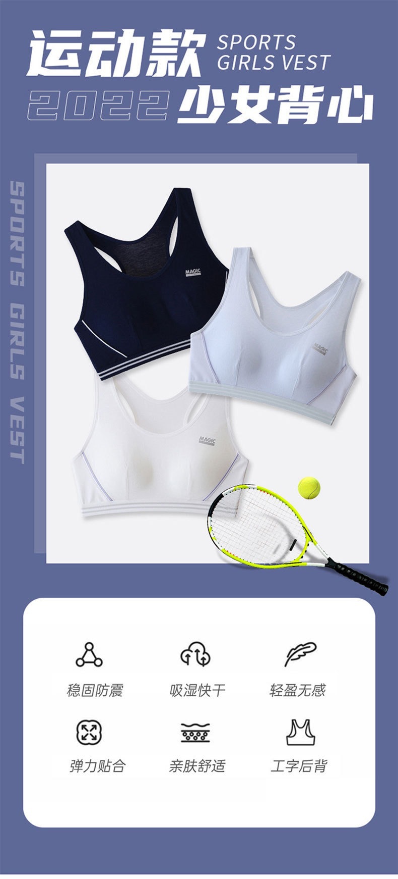 사춘기 동안 중학교 및 고등학생을위한 소녀 스포츠 속옷 러닝 쇼크 조끼 여름 얇은 플러스 사이즈 브래지어