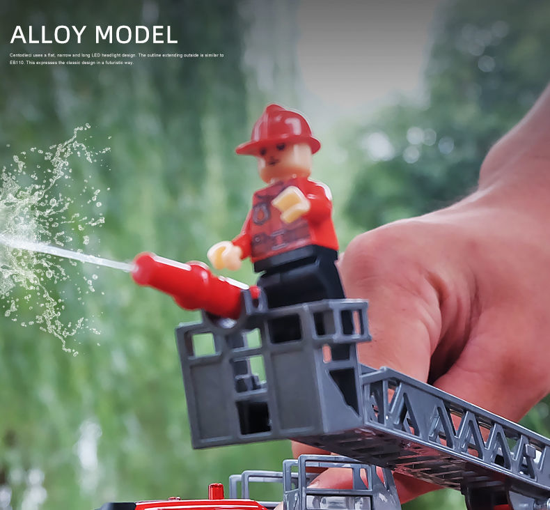 대형 장난감 소방차 합금 스프레이 물 사다리 물통 스프링클러 트럭 시뮬레이션 어린이 자동차 모델 소년스토어 가기