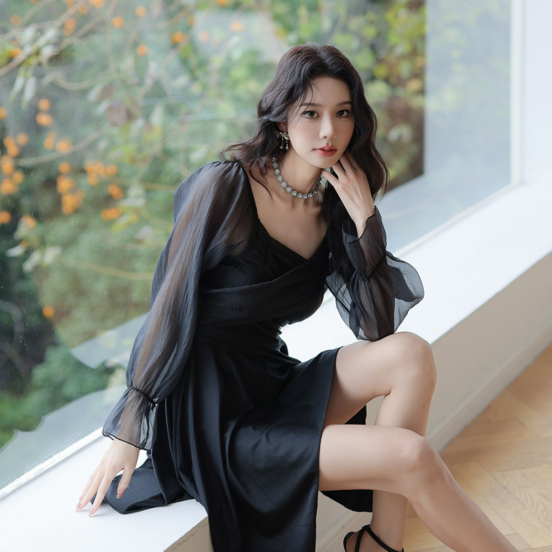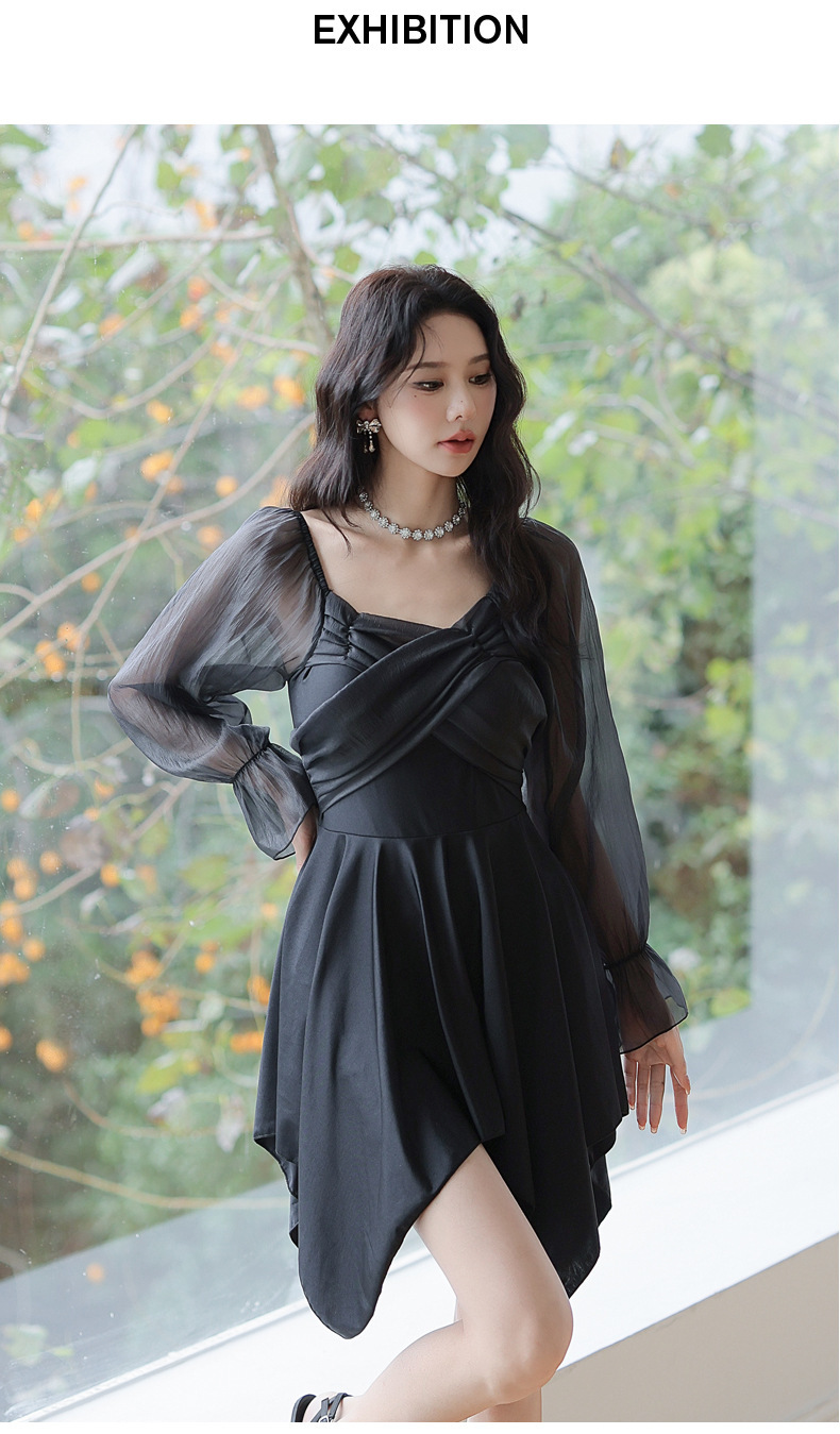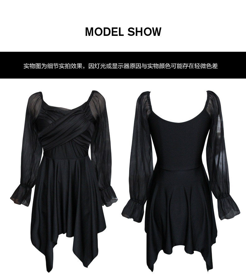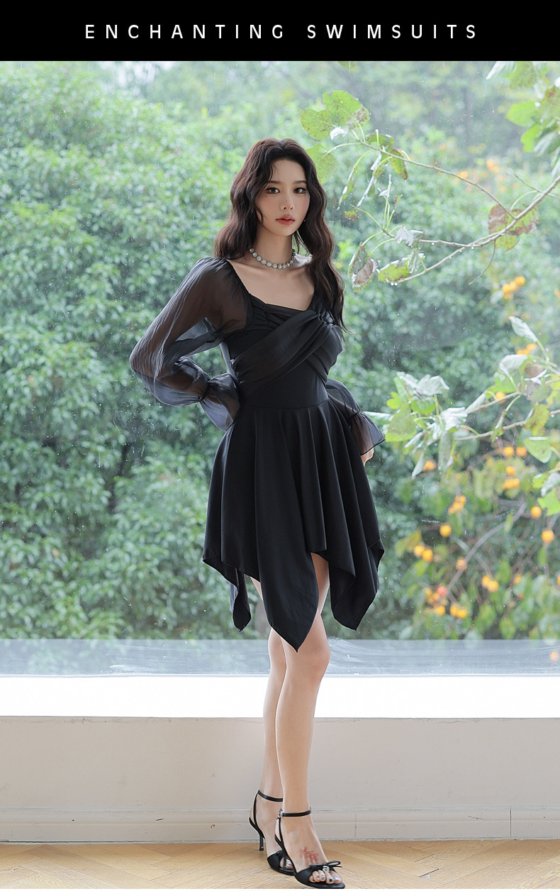 새로운 수영복 여성 요정 스타일 단색 간단한 스커트 스타일 보수적 인 긴팔 배 커버 슬리밍 온천 휴가 수영복스토어 가기