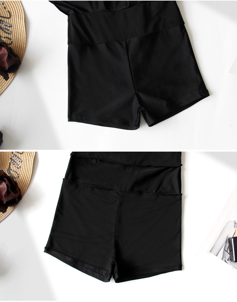 새로운 수영복 여성 요정 스타일 단색 간단한 스커트 스타일 보수적 인 긴팔 배 커버 슬리밍 온천 휴가 수영복