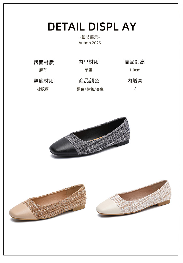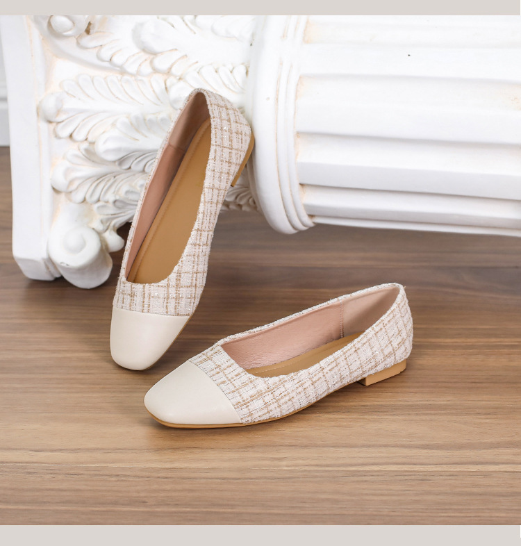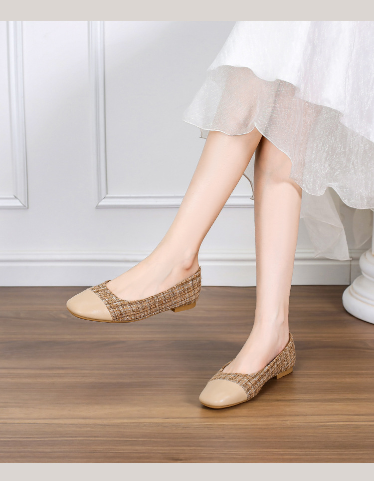 Houndstooth Flat Heels 여성용 향기로운 스타일 색상 매칭 2cm 스퀘어 발가락 얕은 입 우아한 사교계 소프트 가죽 싱글 슈즈 슬립 온