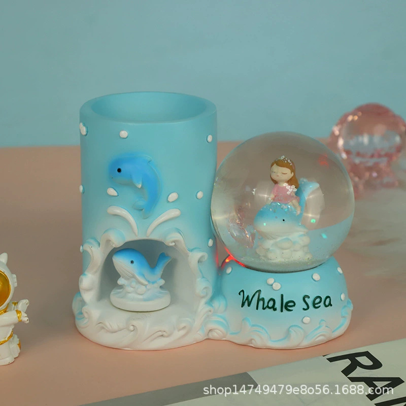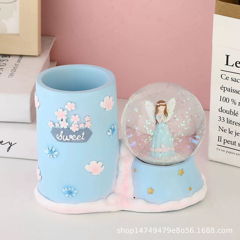 크리 에이 티브 귀여운 눈사람 펜 홀더 램프 다기능 스타 램프 스토리지 펜 홀더 어린이 침실 데스크탑 장식 장식품