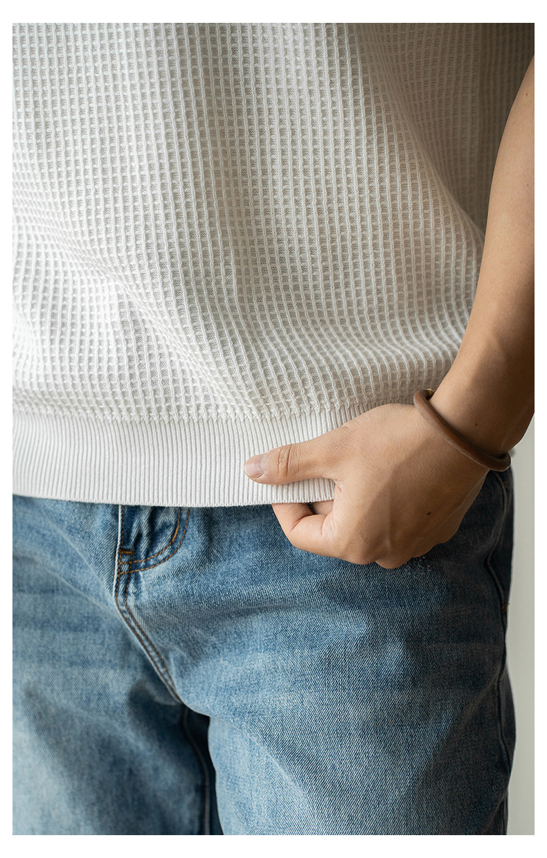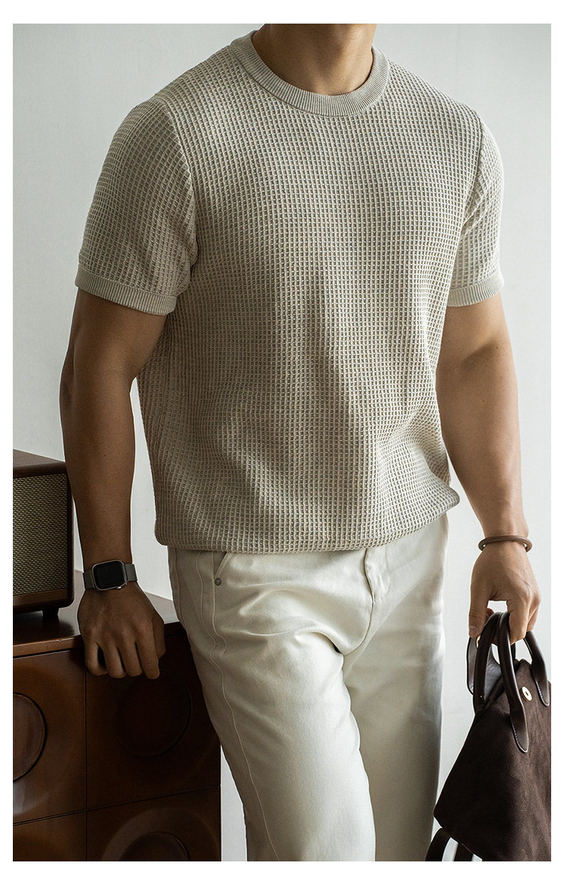 아메리칸 스타일 레트로 와플 드 래핑 크루 넥 반팔 티셔츠 남성 2025 년 봄과 여름 새로운 캐주얼 통근 실 바디