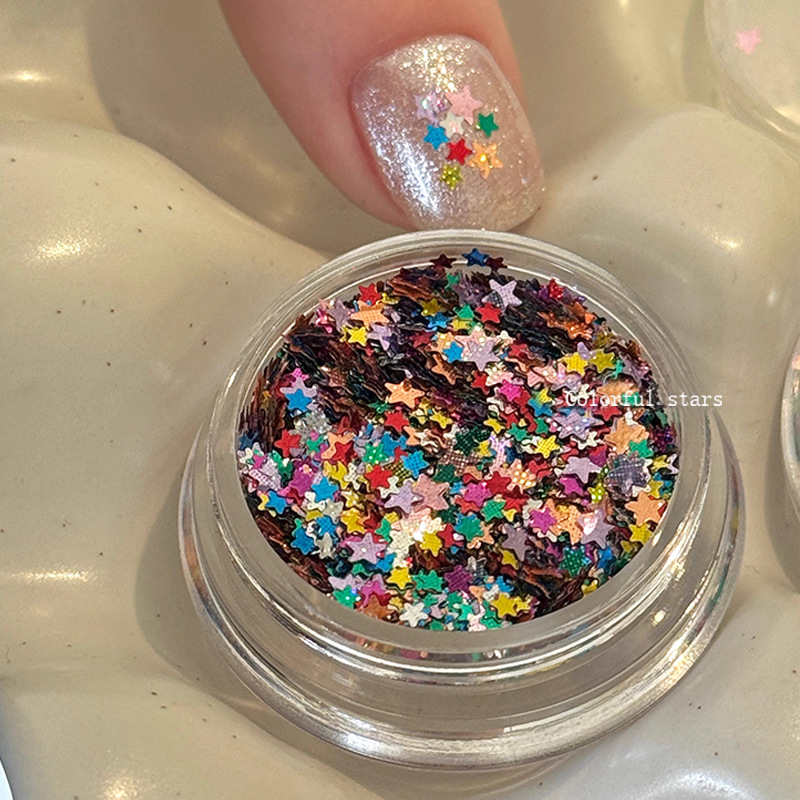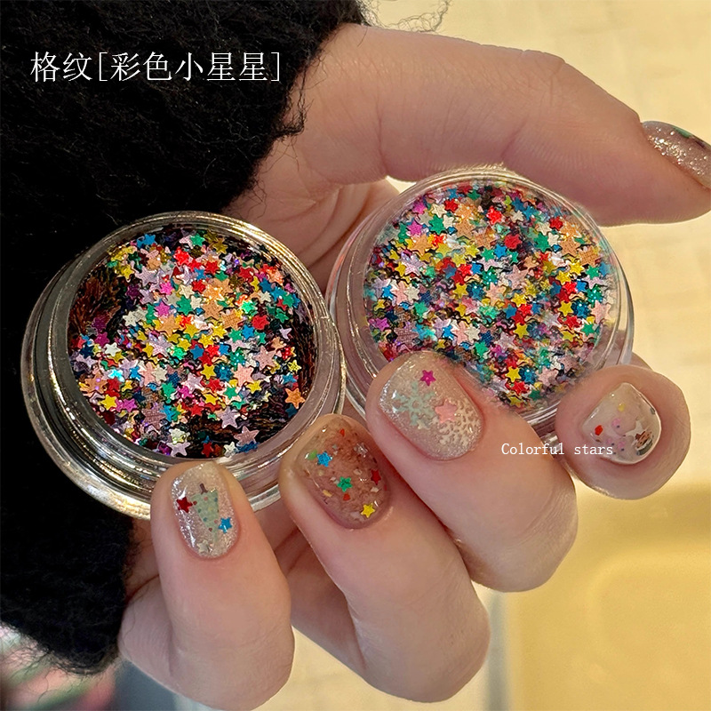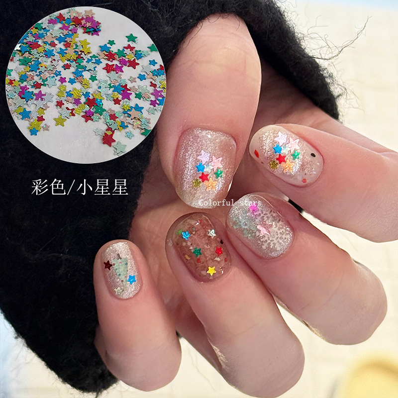 컬러 다섯개 별 네일 아트 스팽글 보석 인터넷 붉은 폭발 도파민 별 복고풍 체크 네일 아트 장식 재료스토어 가기