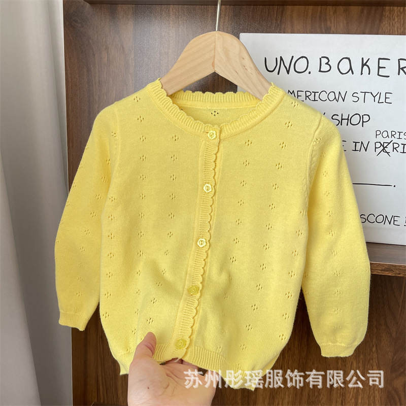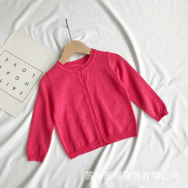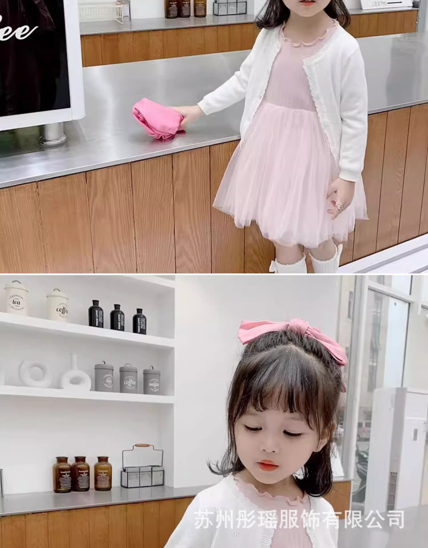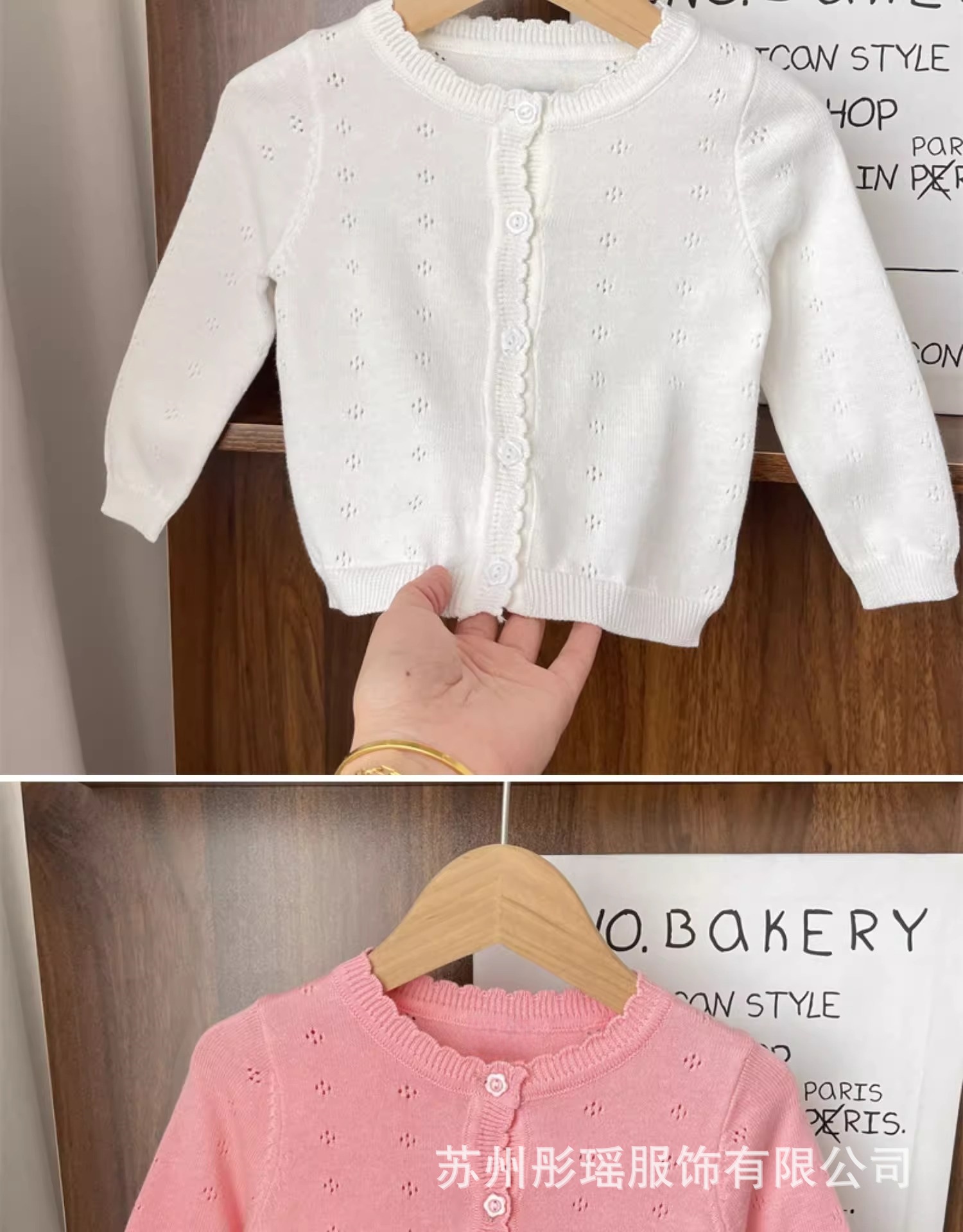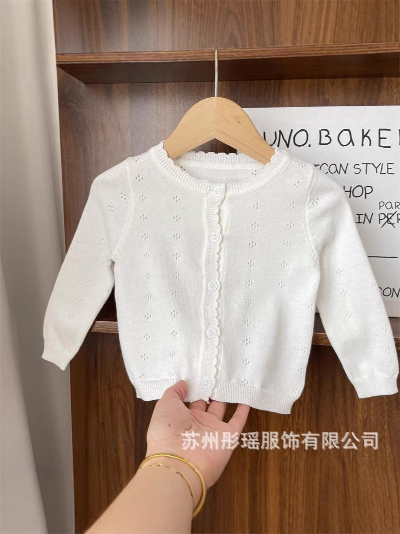 여자 아기 소녀 니트 스웨터 카디건 봄, 여름, 가을 외부 얇은 소녀 에어컨 작은 코트 어린이 선 스크린 화이트 착용